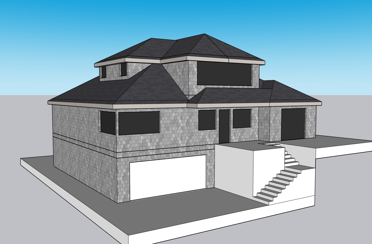 colonial revival exterior shot coastal cottage with street in front mountain behind architecture