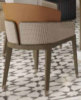 modernist perspective shot weaving inspired back chair wooden legs finish upholstered seat and back architecture