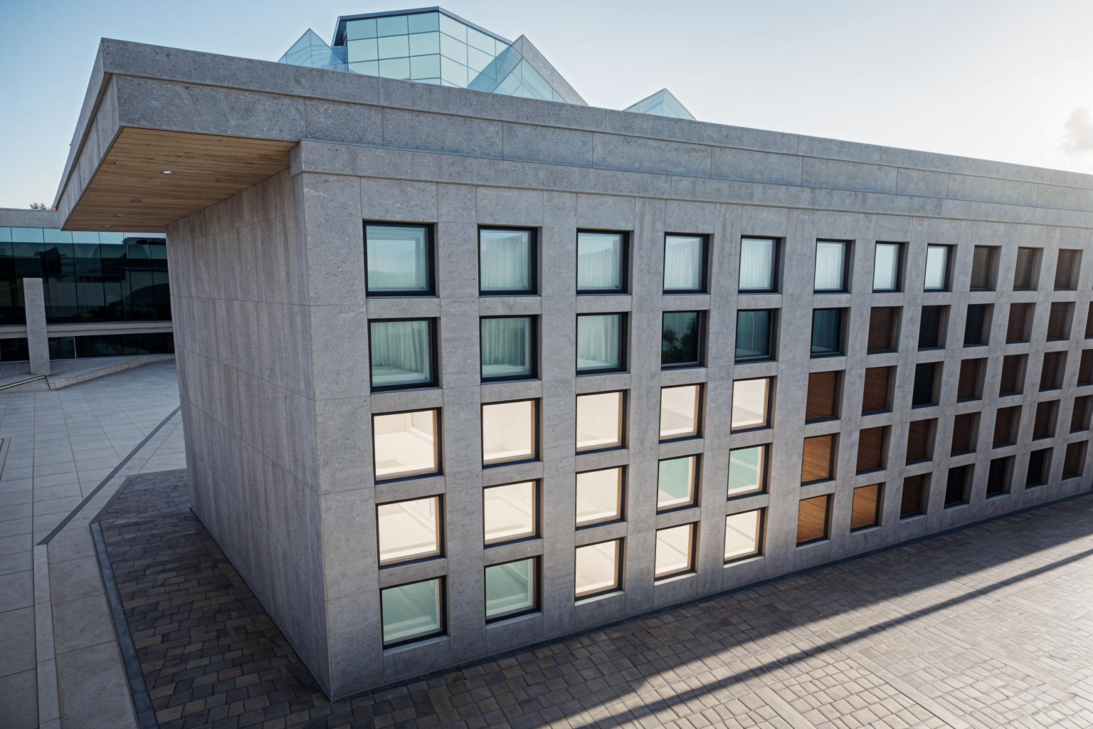 minimalism perspective shot blocco loculi fori rivestimento in granito architecture