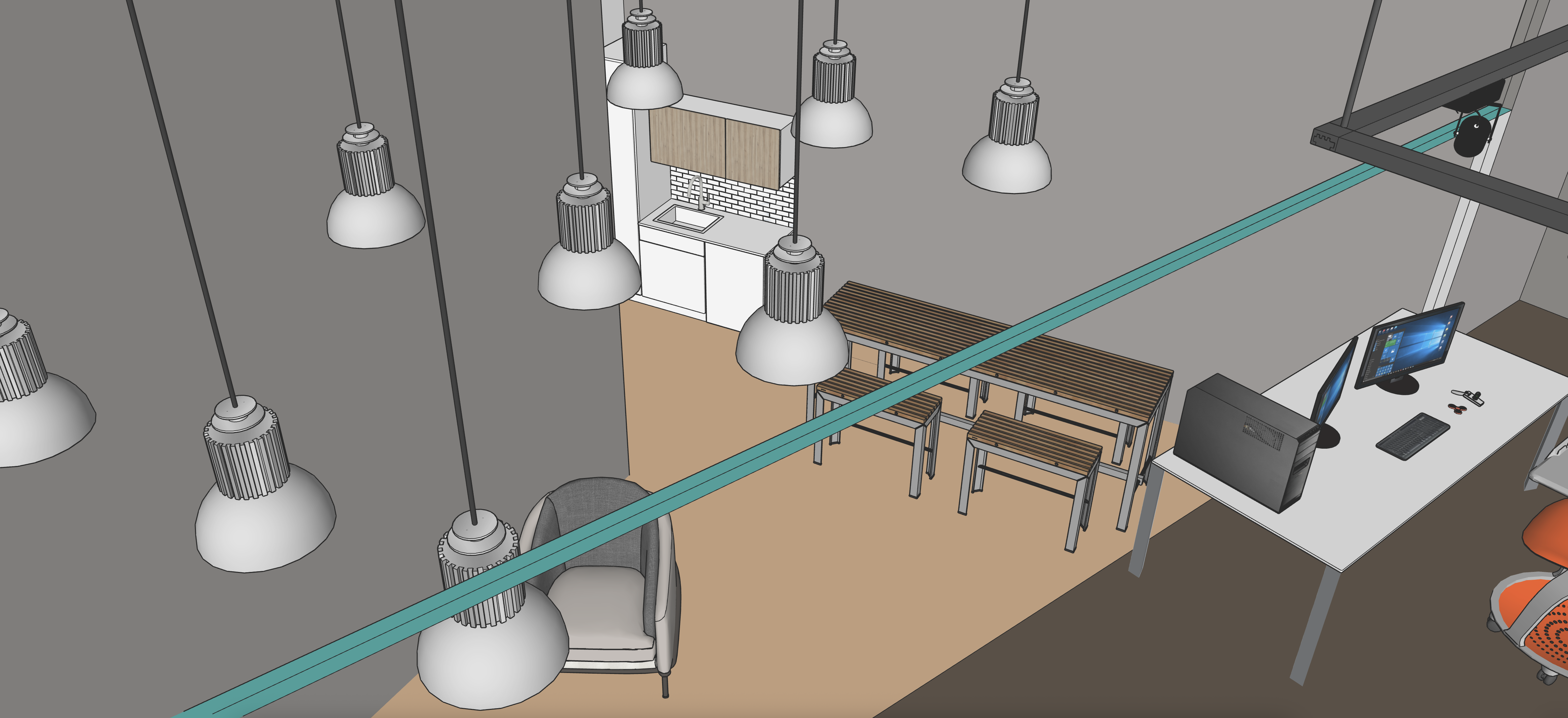 timber flooring throughout on both levels of the rendering balustrade has metal and glass segments desk is made of wood top and black metal legs
