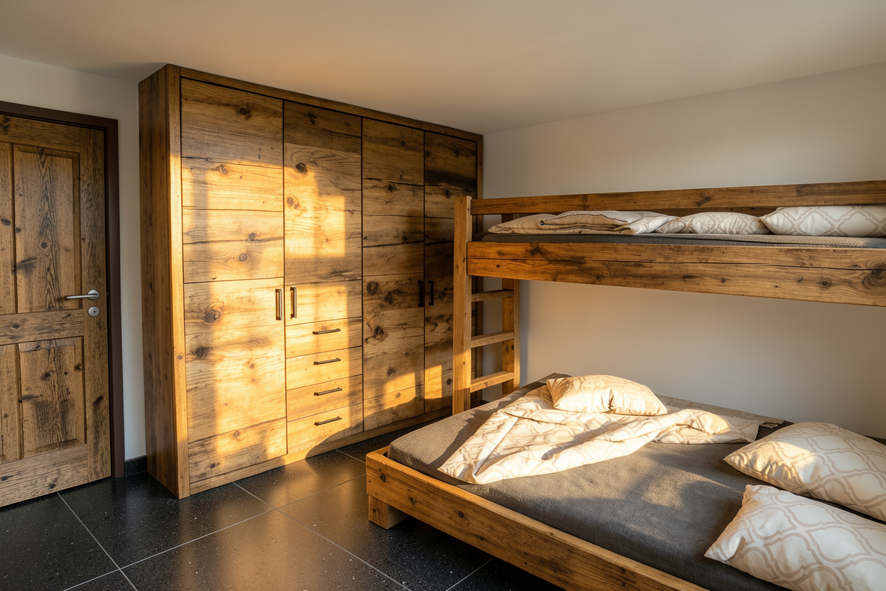 fotorealistisches innenraum foto exakt dieselbe perspektive und kameraposition wie das hochgeladene referenzbild 100 identische raumgeometrie exakt gleiche m belanordnung kein fenster weiches nat rliches tageslicht leicht schr g einfallende sonne sanfte realistische schatten realistische materialien echte holztexturen stoff mit leichten gebrauchsspuren fenster in holz das t rblatt ist in altholz der t rrahmen dunkelbraun alle m bel in altholz hochwertige oberfl chenreflexionen boden ersetzen mit platten 60x60 granite dark grey matte surface canon eos r5 35 mm festbrennweite f 2 8 nat rliche farbwiedergabe leicht warme farbstimmung golden hour feeling hyperrealistisch dslr qualit t raw aufnahme 8k aufl sung extrem scharf perfekte tiefensch rfe professionelle architekturfotografie
