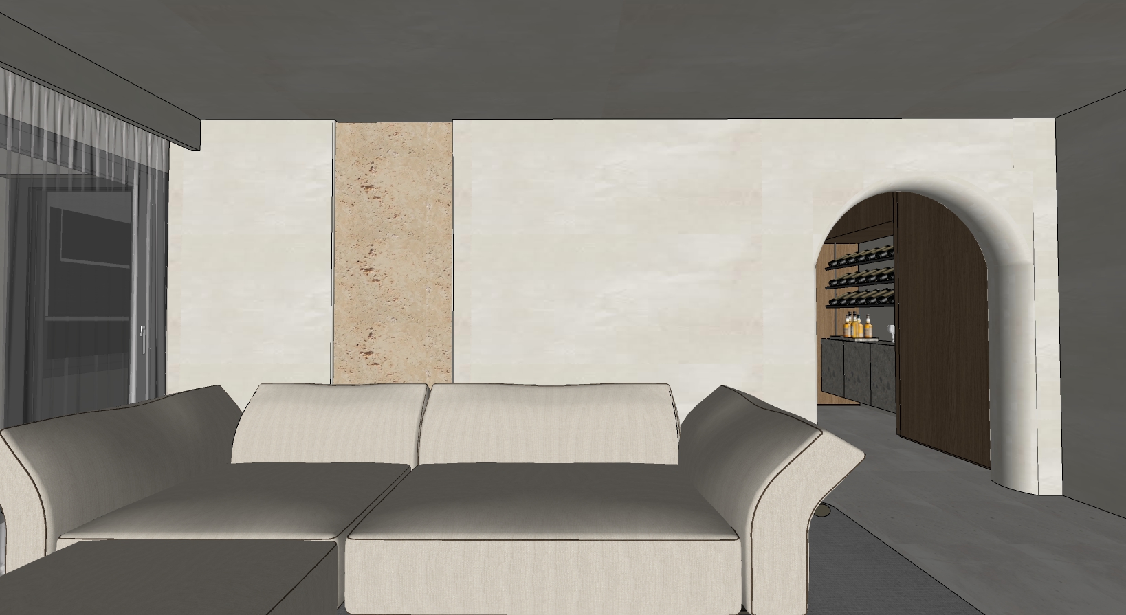 render this image in a realistic style maintaining the exact same composition furnishings and design without adding or removing elements