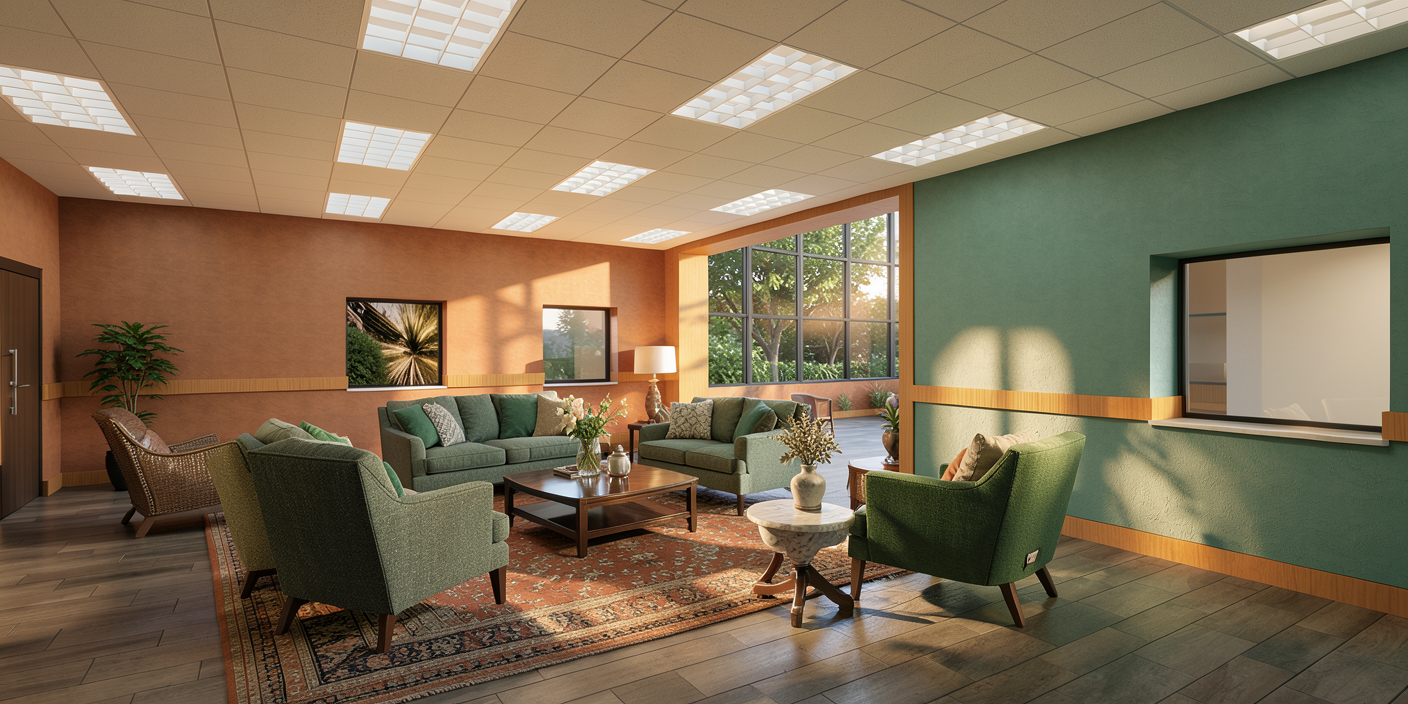 lounge area with people facing to the right