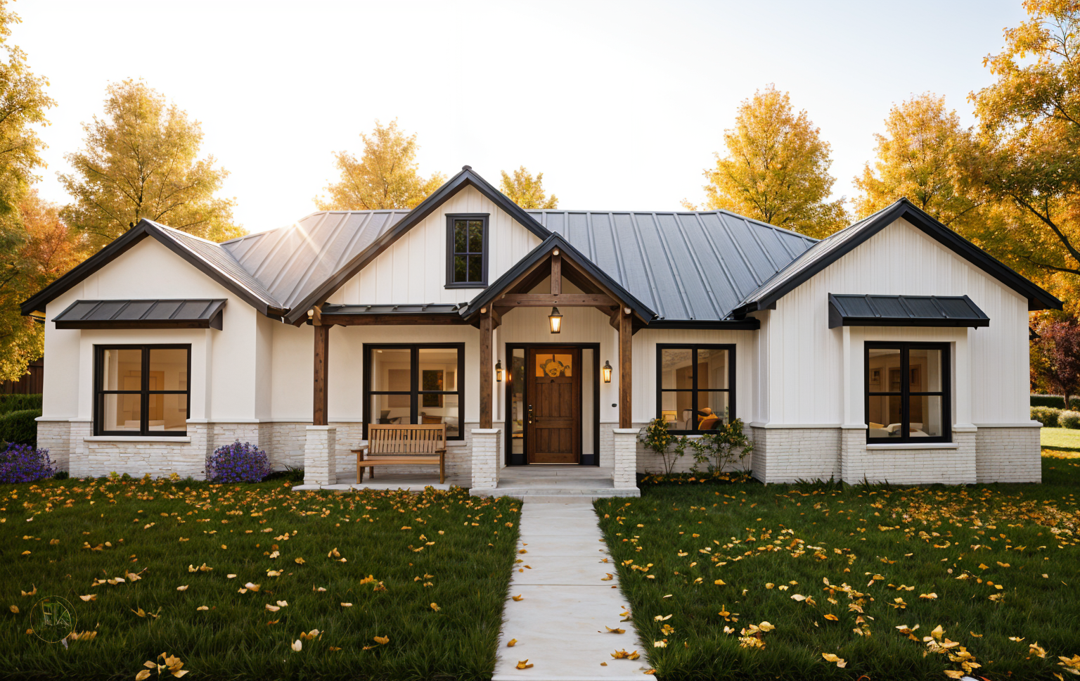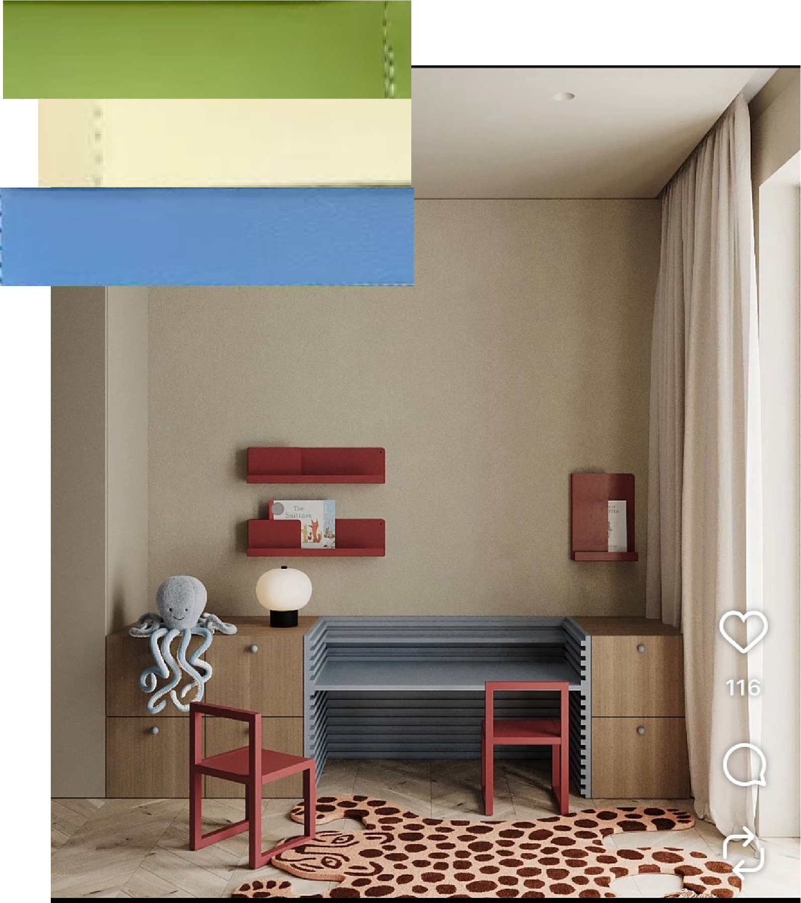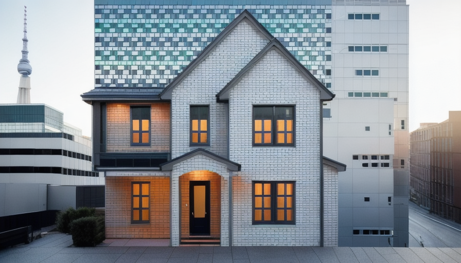 exterior shot make style as in the photo use only those 3 colours in the corner