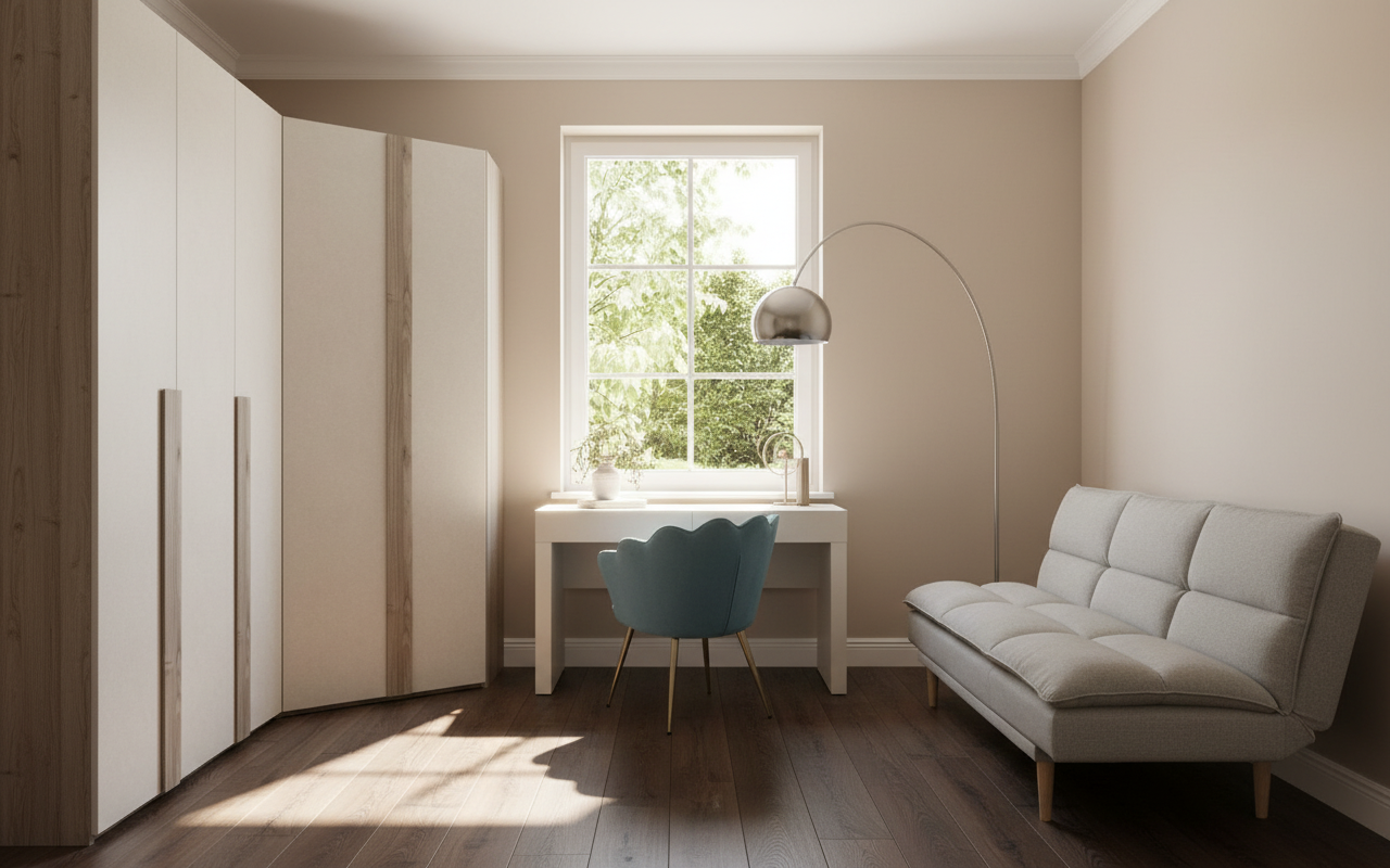 create ultra realistic images without changing any structure shape design or materials do not resize the jpeg beige wooden floor cream wall panel