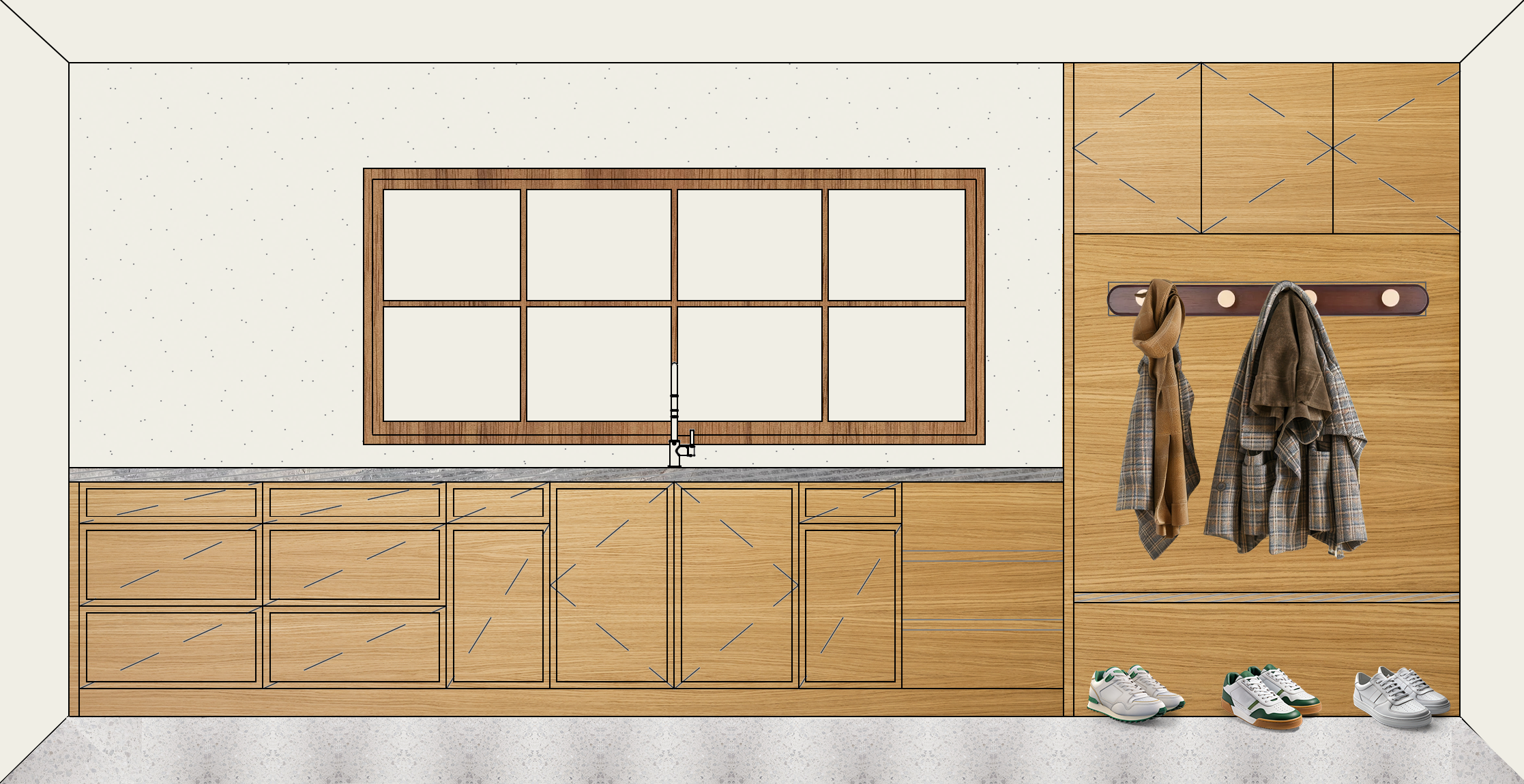 make this interior elevation look realistic cabinetry wood tone is a light wood color