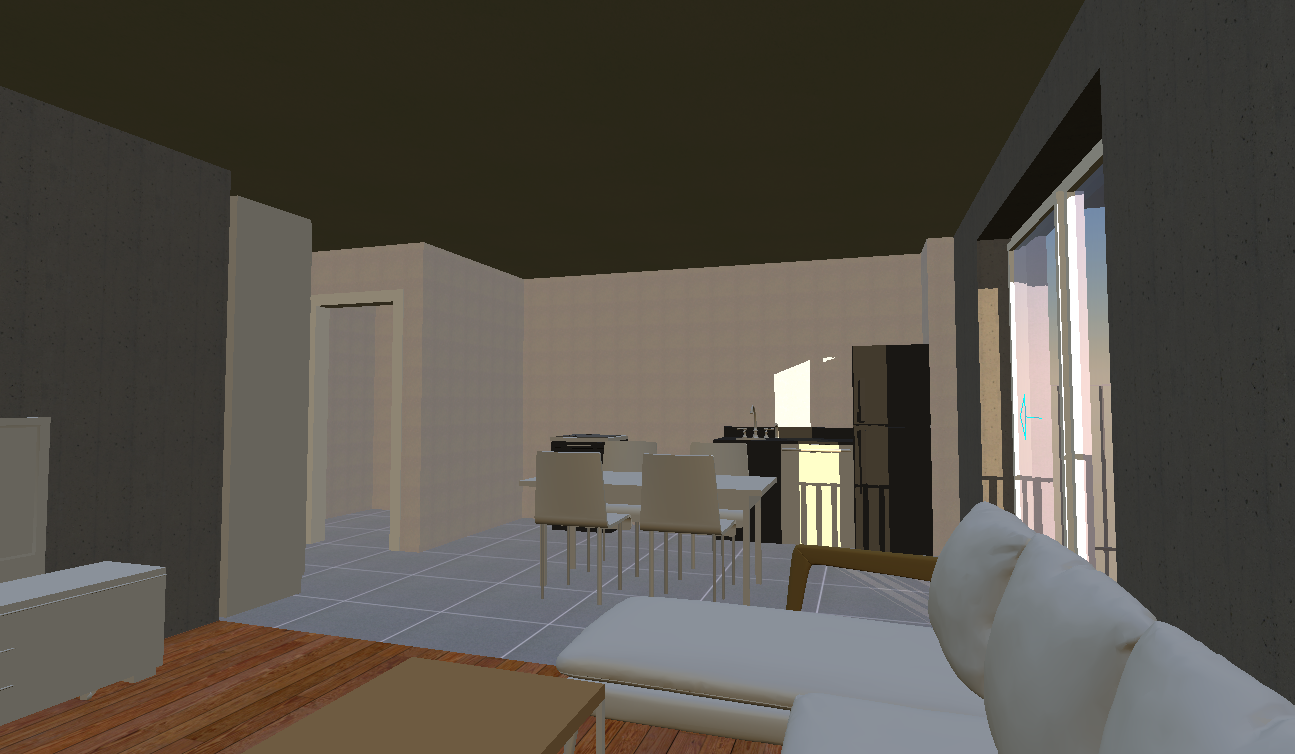 bright walls kitchen in pastel colors with lightning add room lightning glass door on the right should have wooden frame