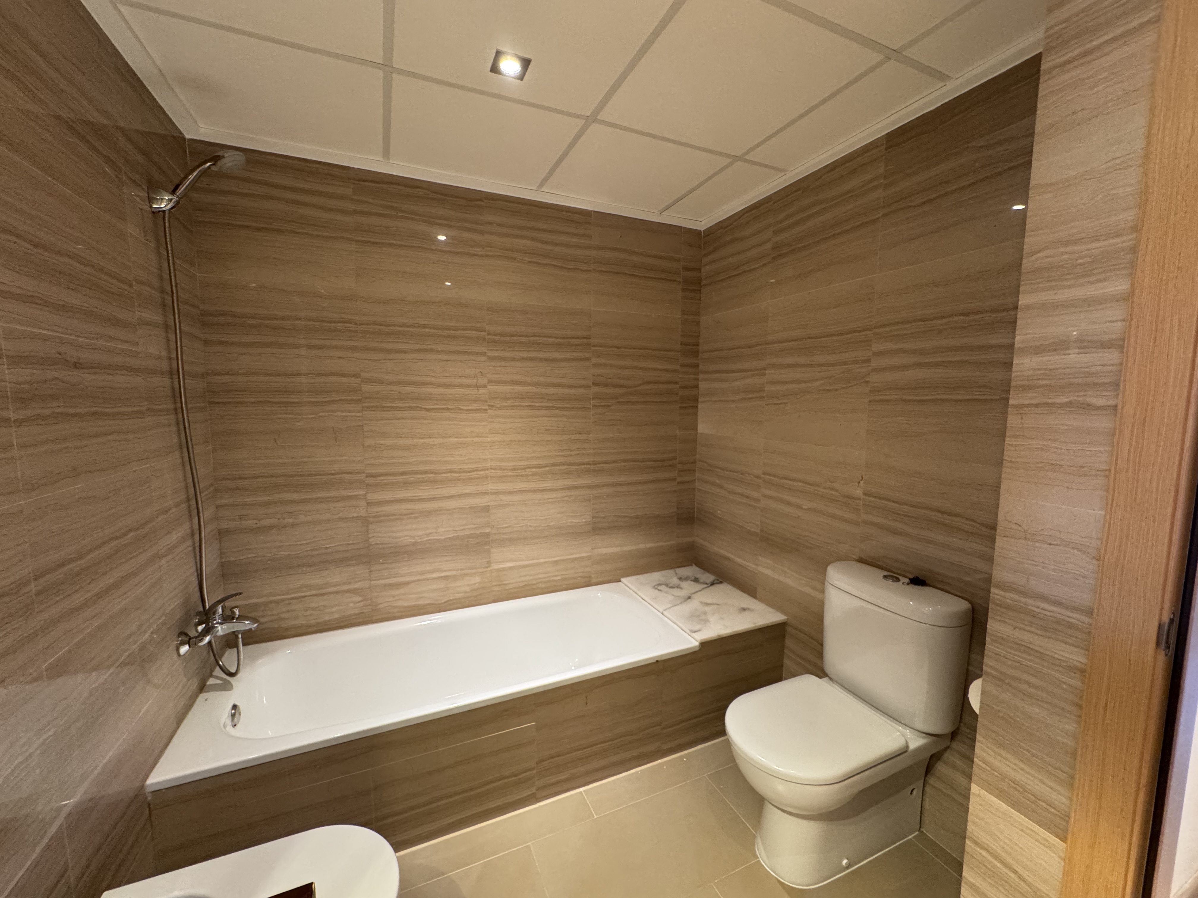 sustituye el revestimiento de paredes y suelo por un microcemento continuo sin juntas como el de la imagen de referencia