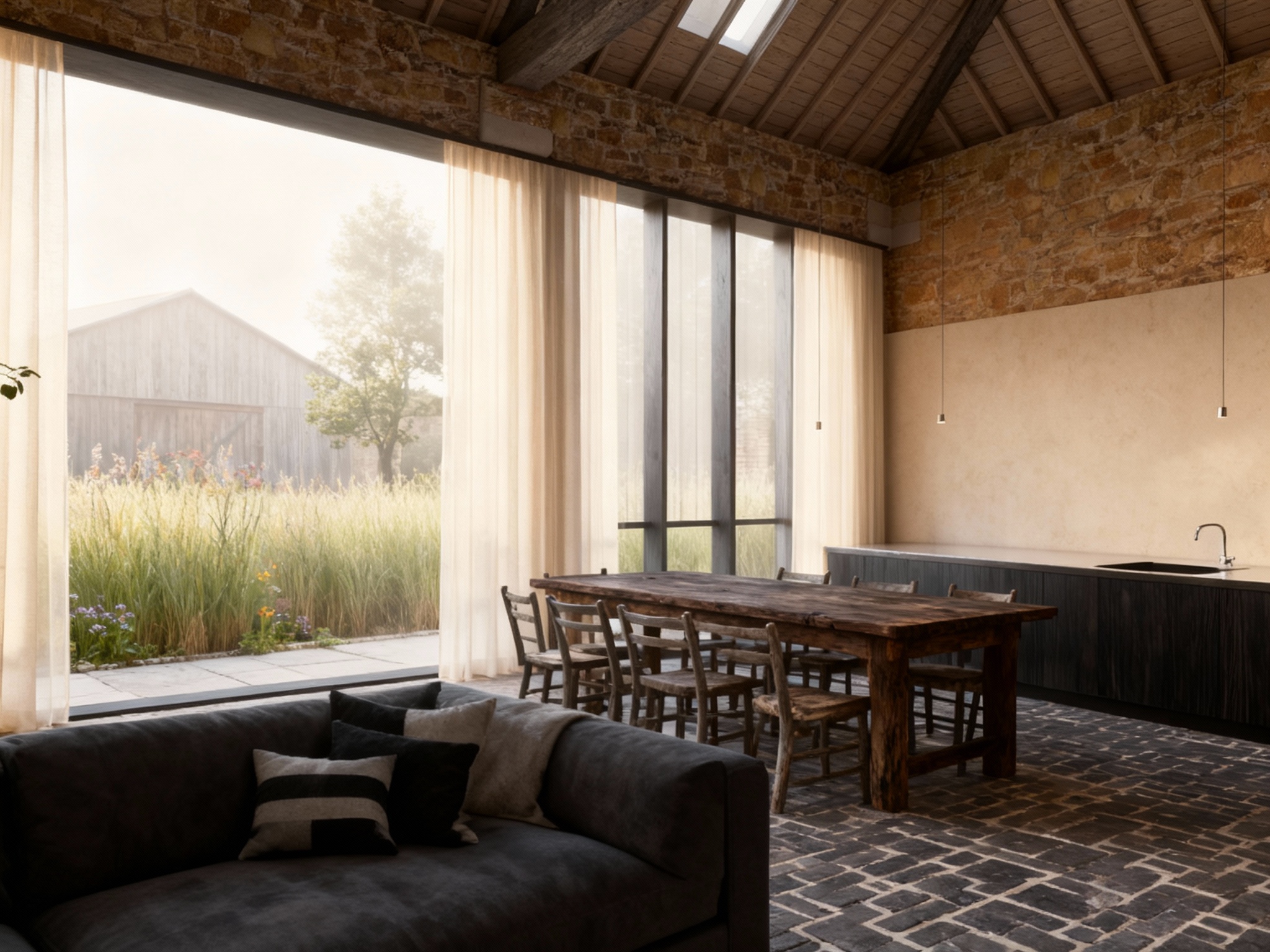 a manicured lawn layered flower beds low maintenance shrubs native plants stone pathway leading to the entrance