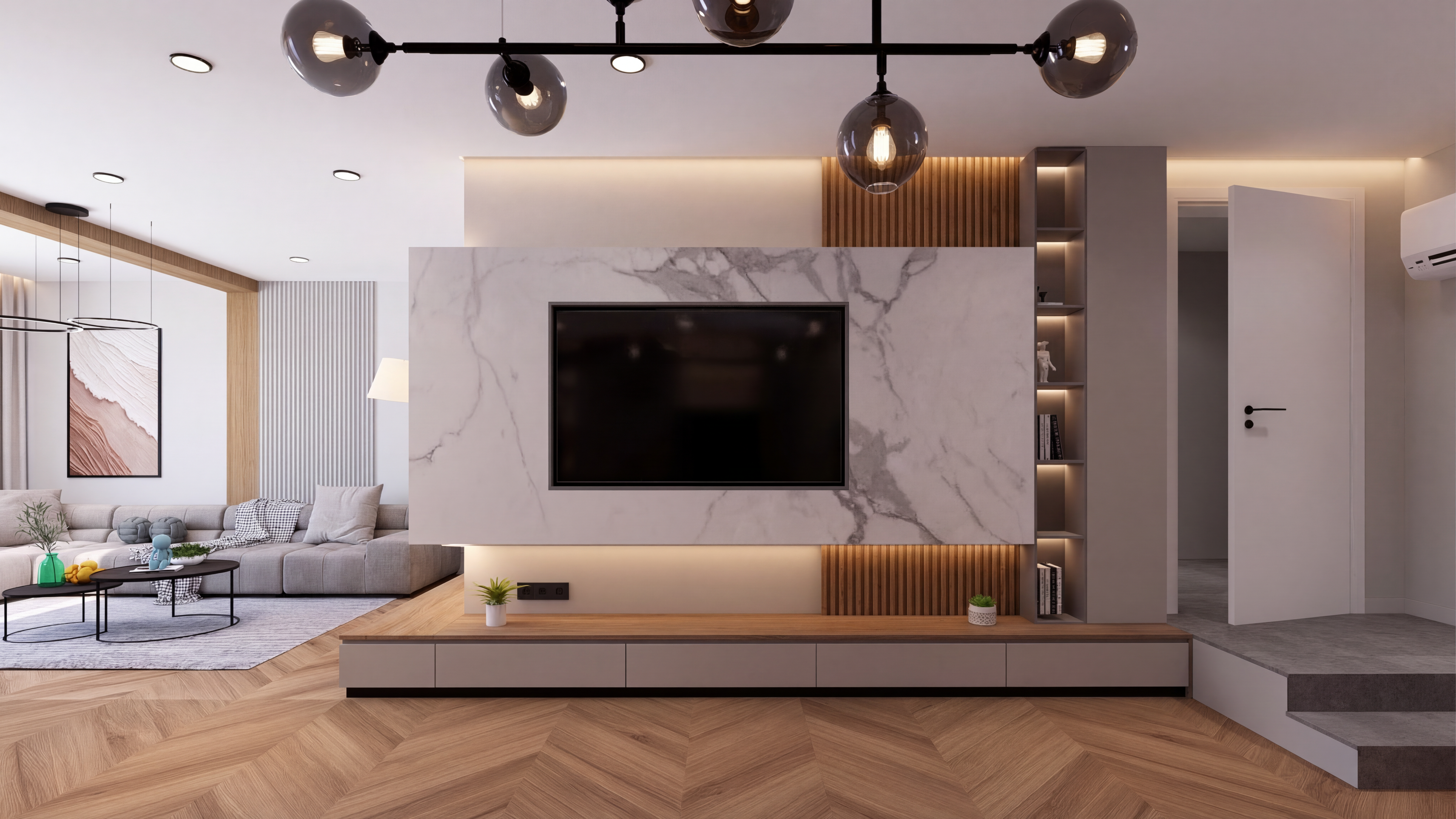 photorealistic architectural render of a modern luxury kitchen kitchen island with matte black marble countertop and waterfall edges cabinetry in dark oak wood handleless design brushed brass fixtures and faucets warm pendant lights hanging over the island large floor to ceiling window with view of a minimalist courtyard garden soft morning sunlight sharp focus 8k interior design photography high end materials sophisticated atmosphere