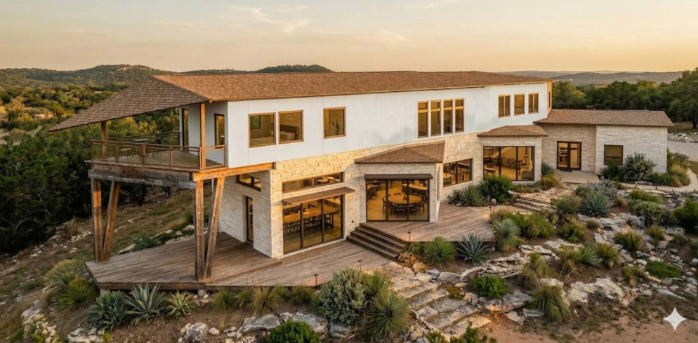 exterior shot change the materials in black stone and white