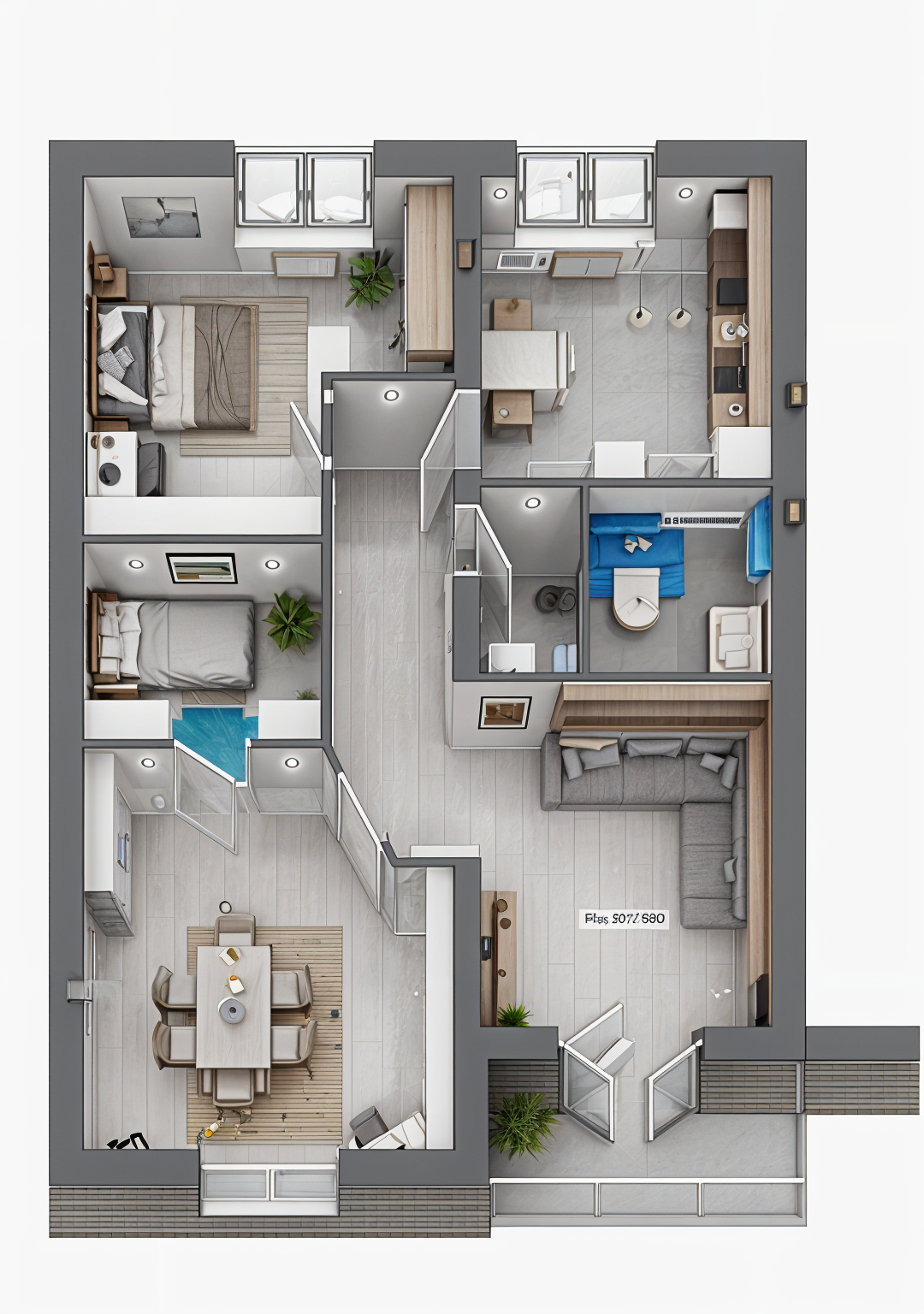 contemporary interior shot kitchen inside a modular wood structure green and light oak add some plants and garden feeling architecture