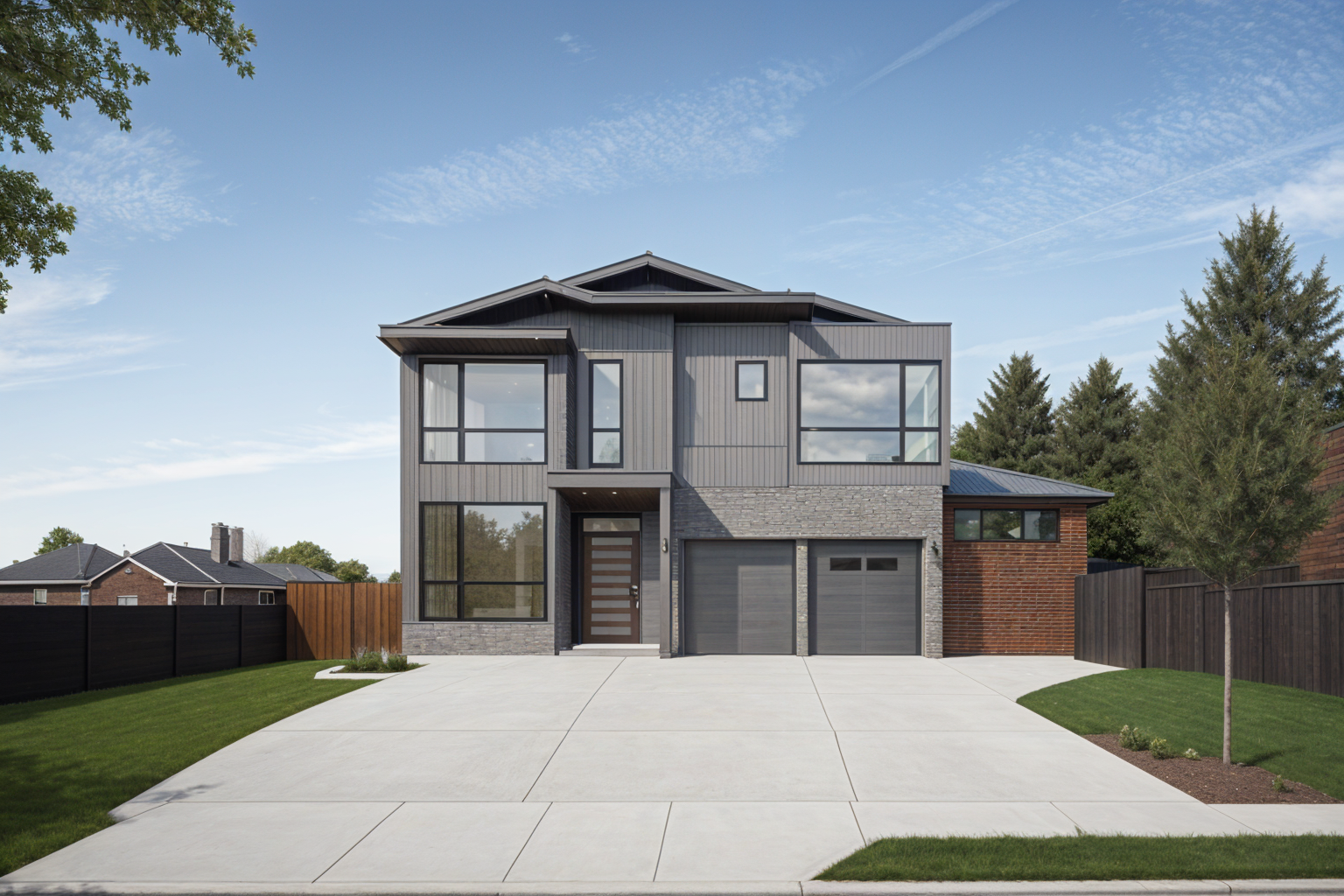 the front exterior view of a modern home architecture