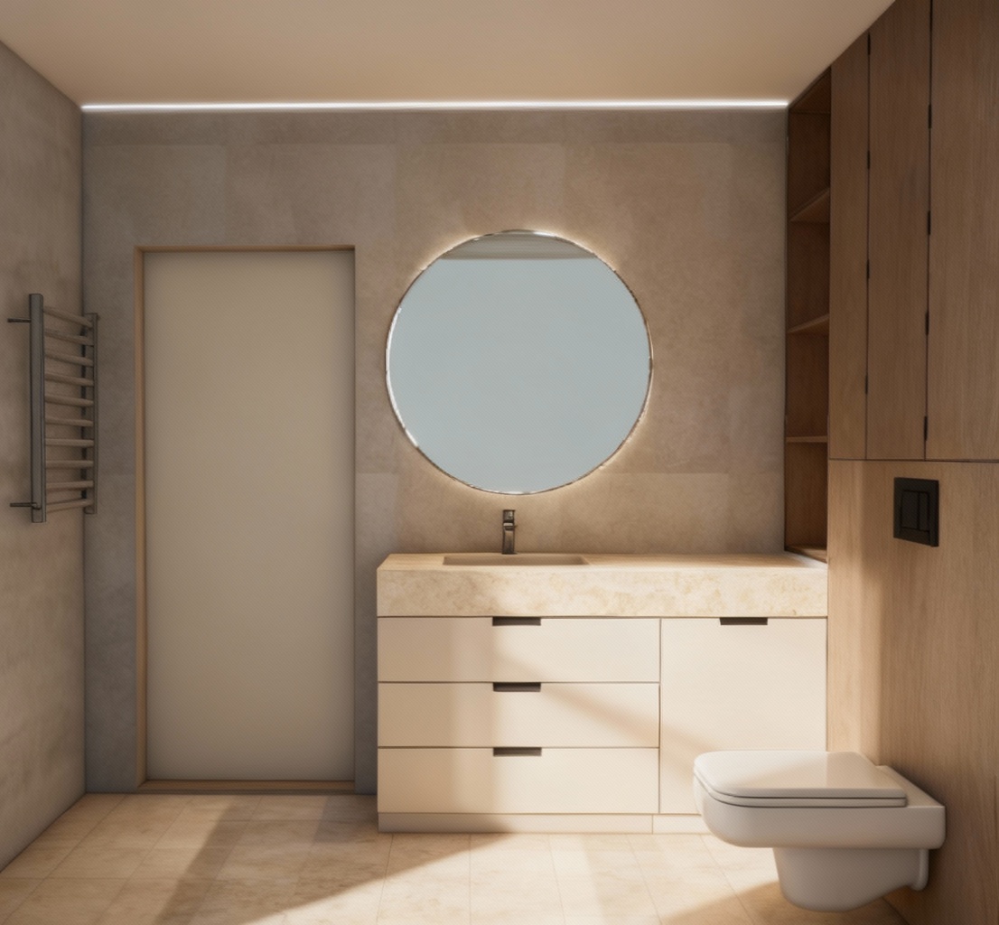 nie zminiaj nic niepotrzebnie bo ten render mi sie podoba ale chce aby kaloryfer by w kolorze chromu a pod oga niech ma takie same du e p ytki jak ciana na przeciwko dodaj na rodku syfitu ma czarn tube jako o wietlenie