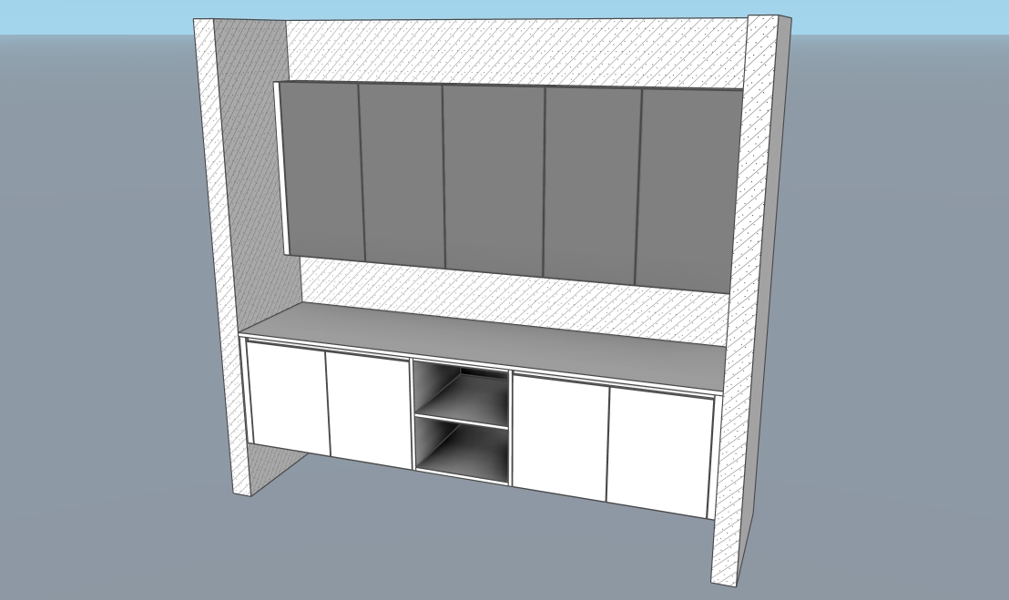 make the benchtop marble and the upper cabinet doors mirror make the sinks white semi recessed bowls