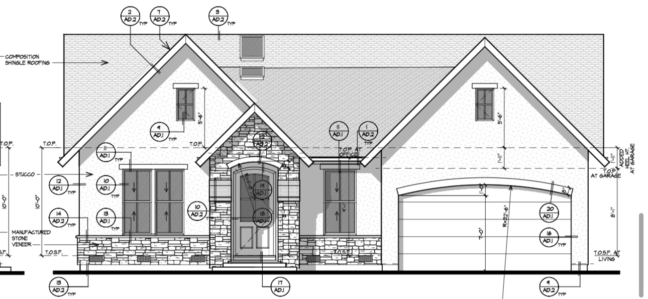 remove the annotations reddish shingles beige wall color wooden garage door brown window trims beige travertine stone brown gutters black downspout make arch into indian carving