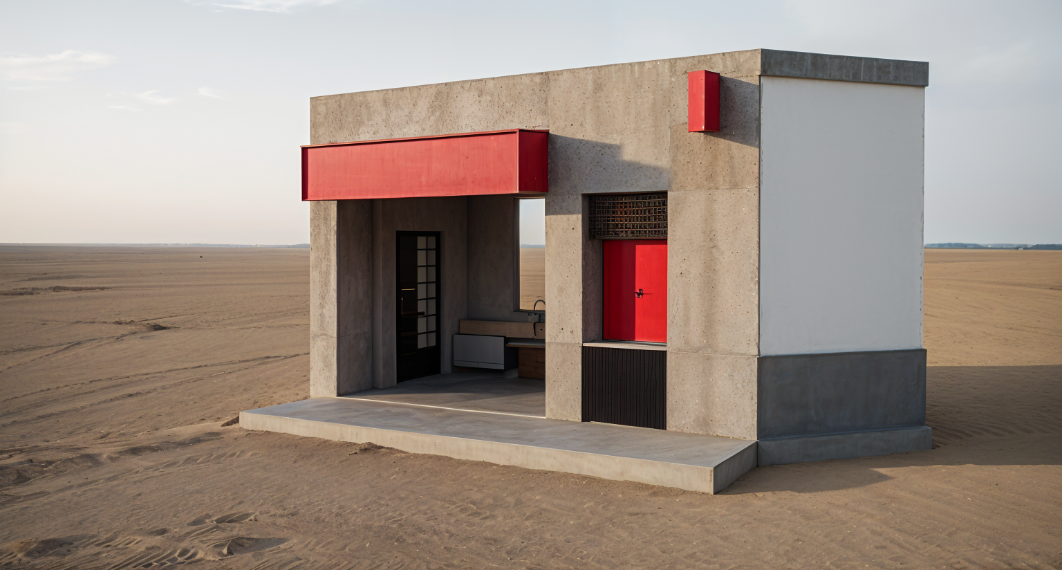 hard constraint arch synth prompt do not alter any geometry render the fa ade exactly as modeled with no changes to geometry thickness proportions openings positions or dimensions apply only these materials and nothing else fa ade box spray painted steel ral 4010 telemagenta fully glossy smooth reflective not fabric not matte not desaturated building walls raw cast concrete light grey subtle trowel texture no marble no tiles no stone slabs no panel lines no bolts no seams entrance interior walls left and right only white ceramic 3d relief tiles exactly where modeled subtle glossy finish floor at the entrance platform pink terrazzo with small visible aggregate polished slightly reflective service window area right interior reveal painted ral 4010 telemagenta lower counter black vertical timber slats menu panels matte black chalkboards with simple white handwritten text doors frames dark charcoal black metal matte environmental constraints real urban exterior ground neutral concrete pavement no desert no studio void no beige background lighting natural mediterranean daylight soft shadows critical negative constraints no marble no beige no new shapes no reinterpretation of the architecture no added textures no pastel tones no luxury stone no additional signage no environmental abstraction this is a fidelity render follow the materials and geometry exactly as described and modeled no creative deviation