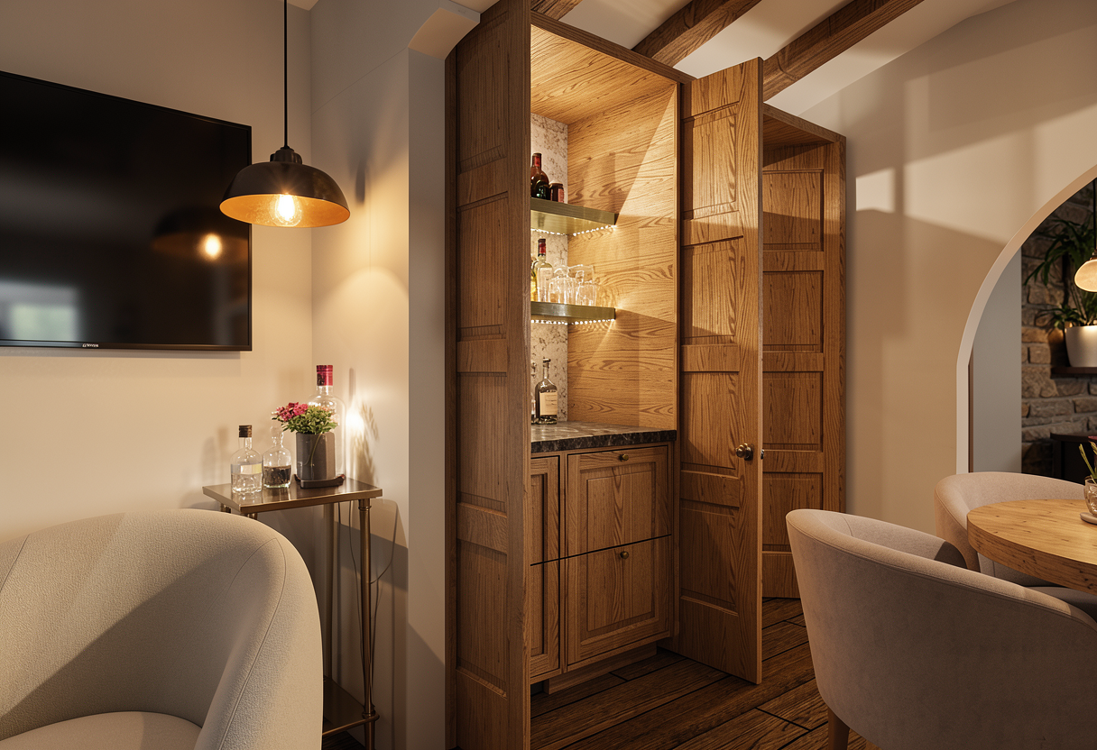 create a more life like bar cabinet maintain same colors textures lights fixtures and furniture