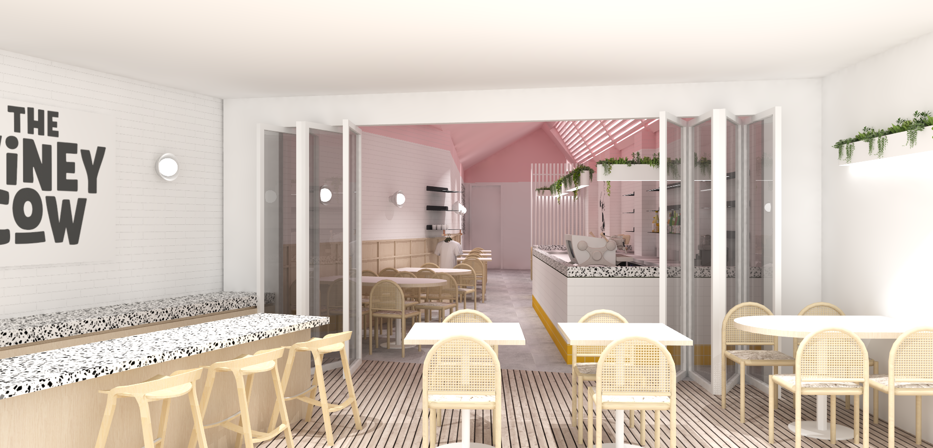 create realistic image include shadows from sun include people in cafe
