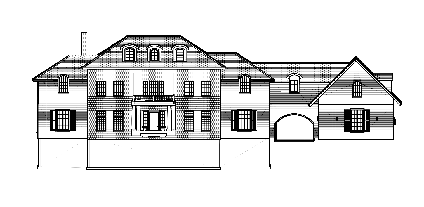 exterior shot photorealistic rendering of a colonial revival home with stone walls in a country setting keep all architectural details elements scale and placements add flared eaves on the roof and corbels under the roof