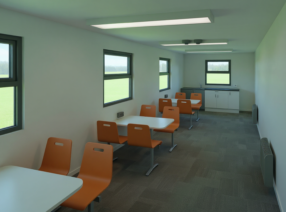 add realistic seated football fans the fans should be wearing red football shirts hats and scarves cheering or watching the game with natural seated poses ensure they match the camera angle perspective scale and lighting of the original render keep all existing stadium architecture seating lighting shadows and pitch completely unchanged maintain photorealistic detail and consistent render quality