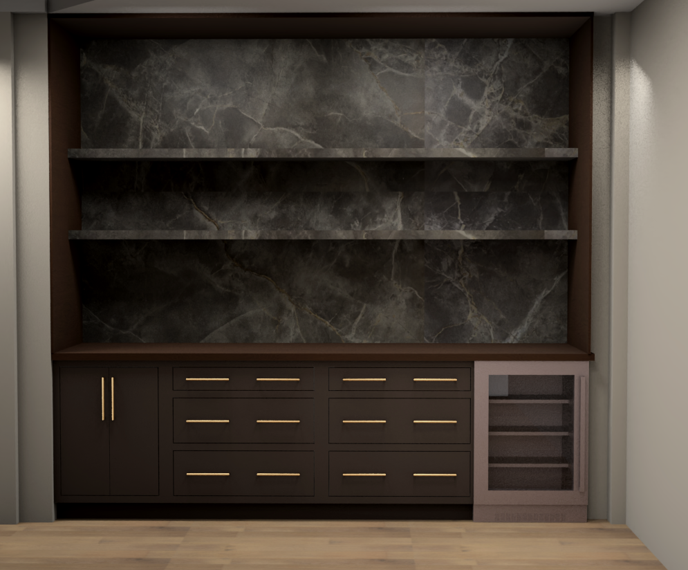 make photo realistic add under shelf lighting add toe kick lighting