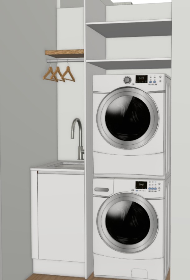 have someone kneeling down and getting clothes out of the washing machine