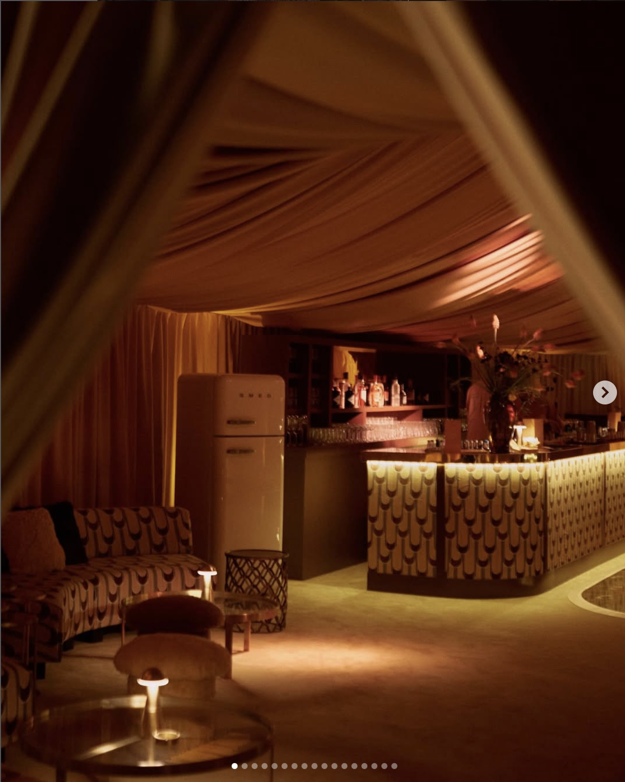exterior shot replace the white door with a front lit painting remove the extra column you created add a few people in the seats with drinks on the tables