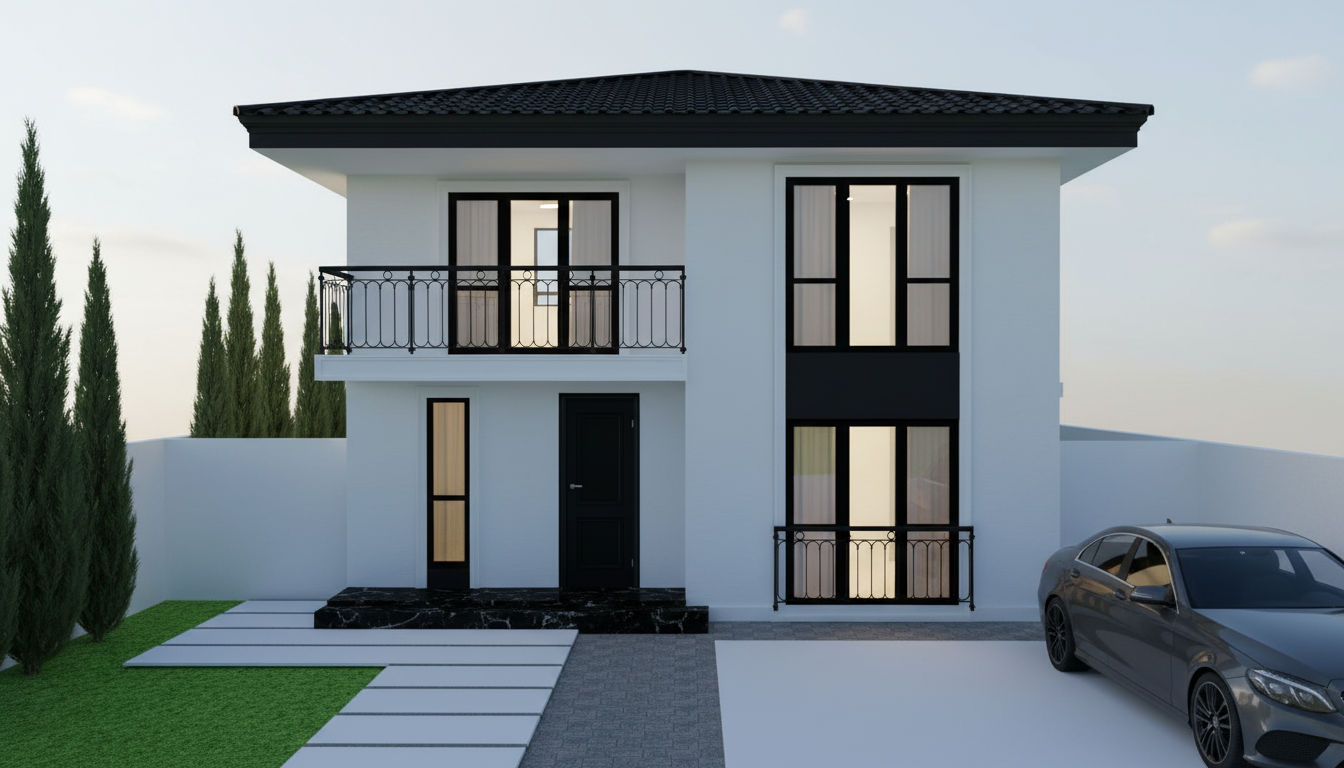 exterior shot remove horiontal linwa on the facade