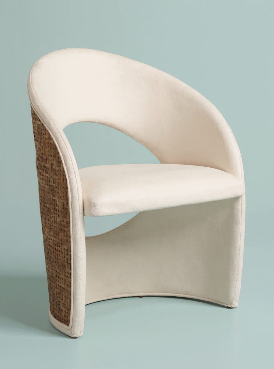 weaving shades of light brown and dark brown finish upholstered white seat and back