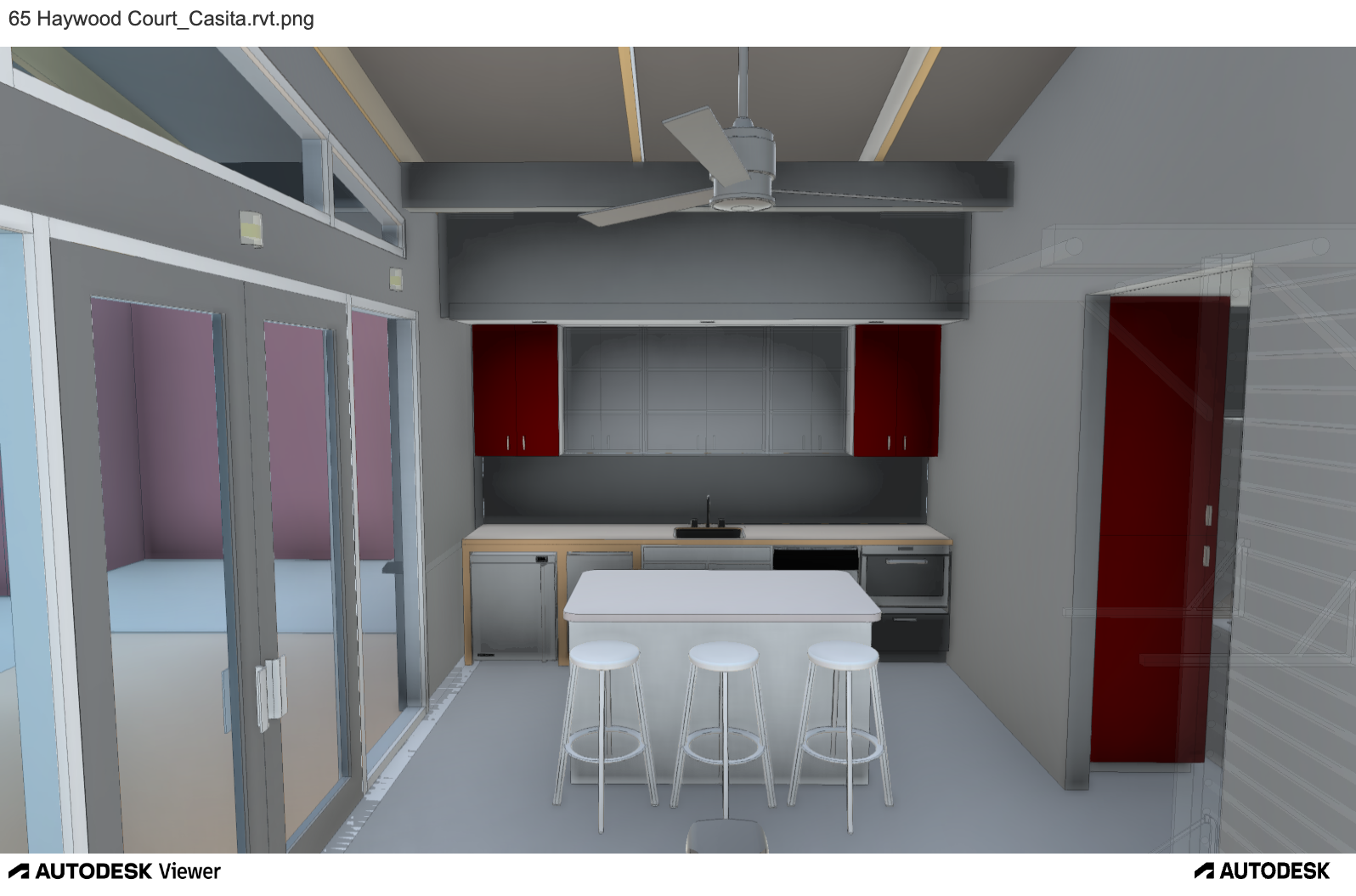 interior shot turn this into a real image with the style of scandanavian organic modern a waterfall island and modern bar stools with a half back the cabinets need to have a modern look with a white oak grey wood finish in the center area above the sink there needs to be floating shelves architecture