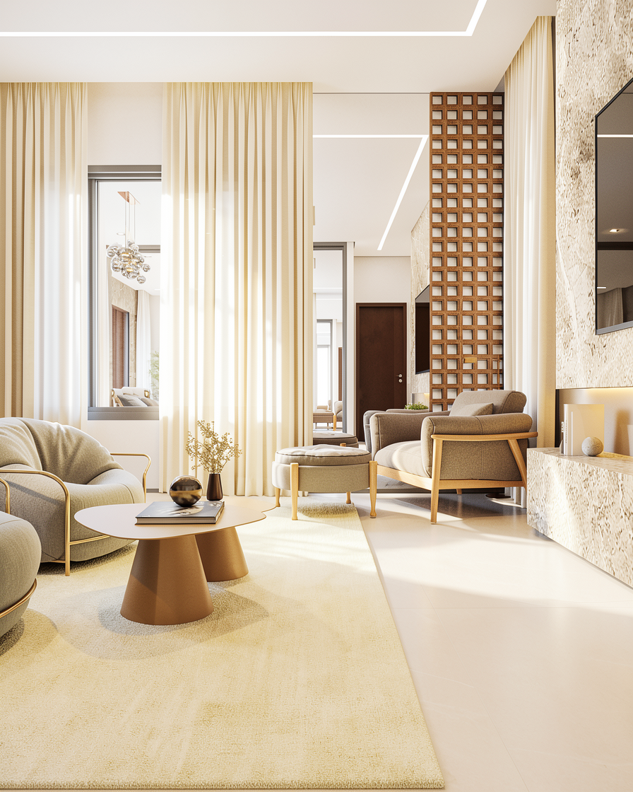 create a photorealistic image with warm northern sun lighting this living room in san diego