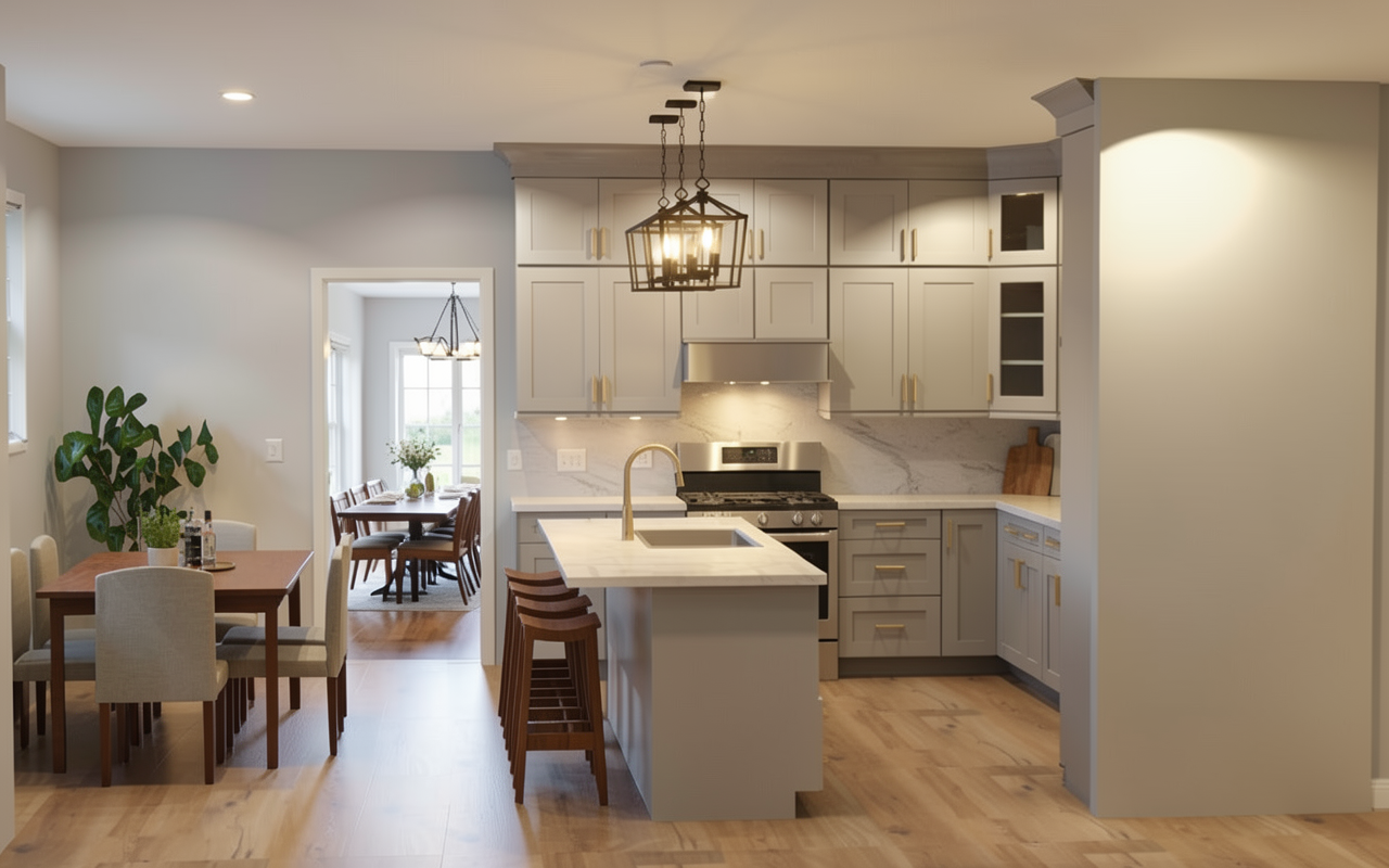convert this floor plan into a realistic isometric 3d view of a full house show the space from an elevated angle with furniture walls and details visible modern interior in earthy colors use the same furniture as shows on the plan do not change the orientation of the floorplan