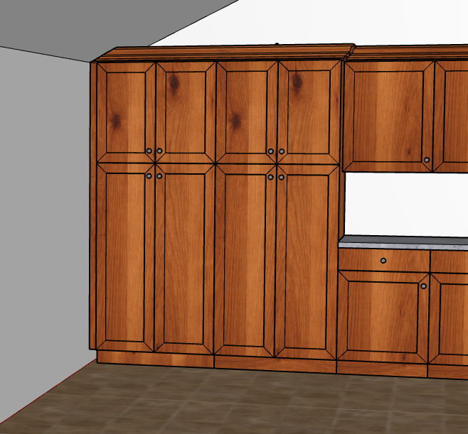 create a realistic rendering of this corner of a kitchen theres lots of natural light coming into this corner with a window just out of frame on the right hand wall the cabinets are made of a stained alder