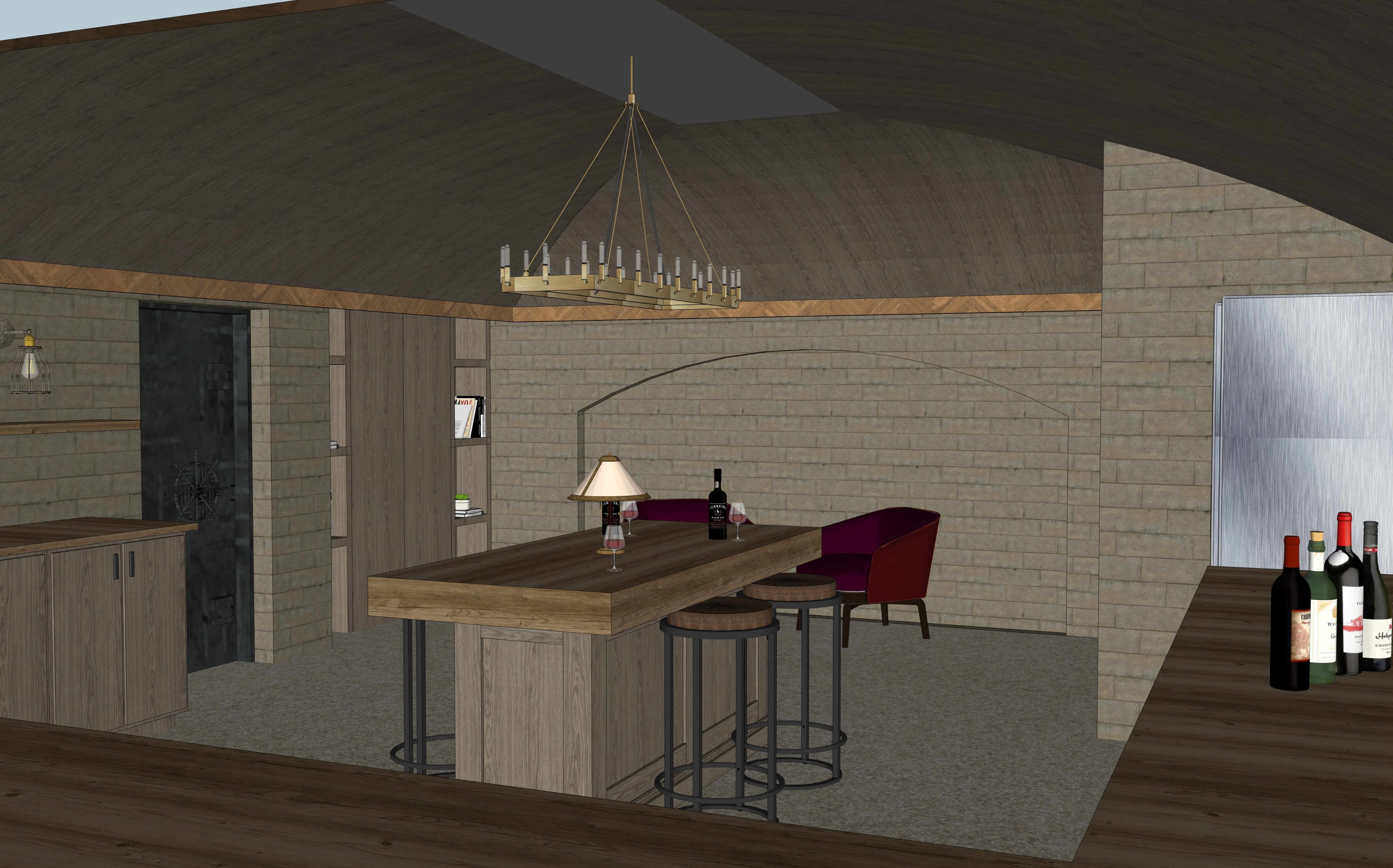 make warmer and cave like cellar 1920s speakeasy style make walls stone