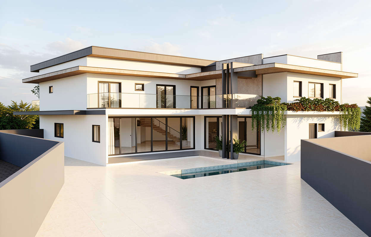 add a pool cascade coming from the right side wall where the plant is into the pool keep pool same shape and place as photo