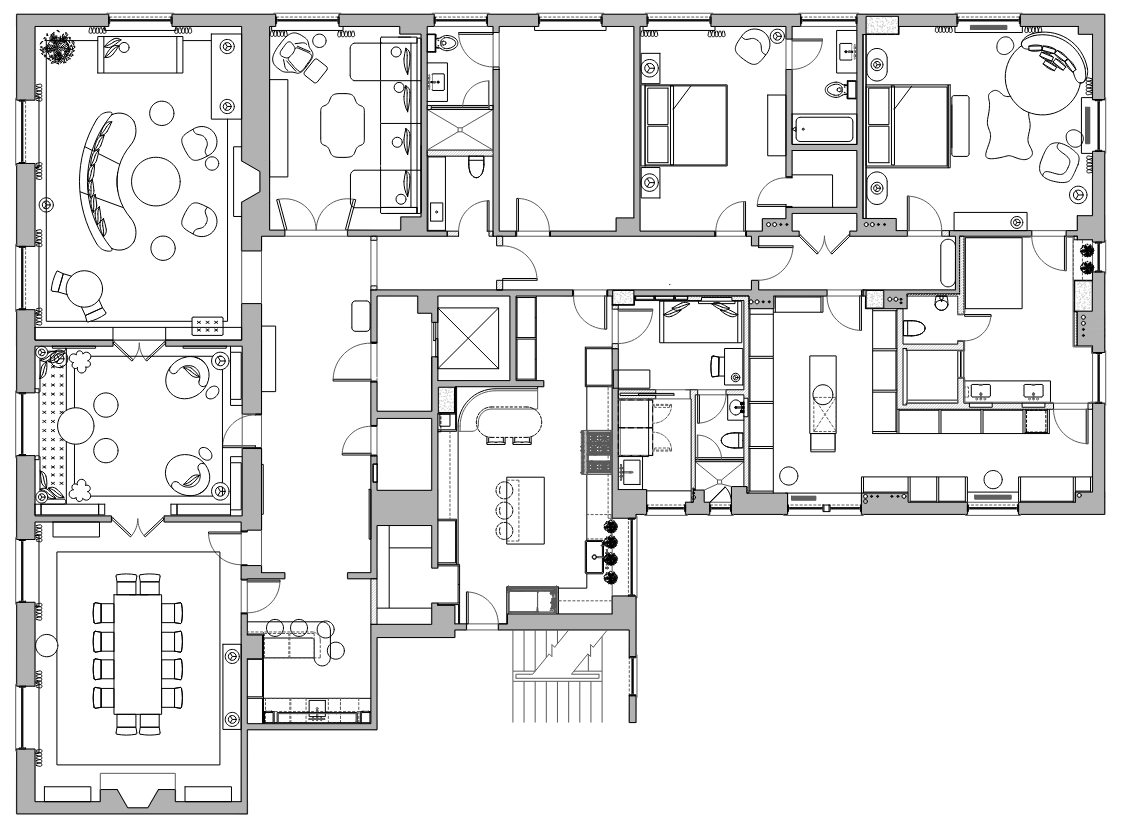 convert this floor plan into a realistic isometric 3d view of a full house show the space from an elevated angle with furniture walls and details visible use the same furniture as shows on the plan do not change the orientation of the floorplan
