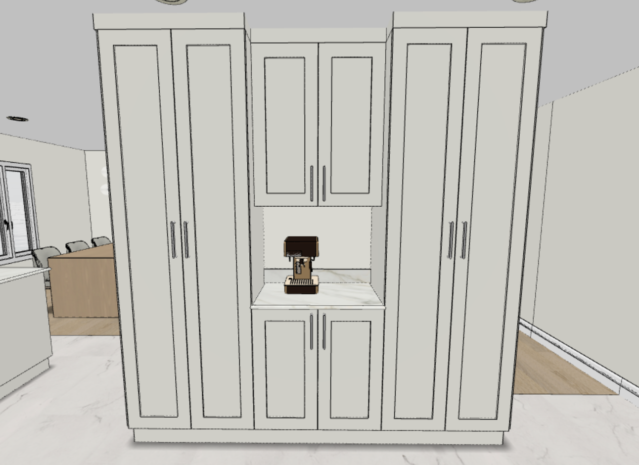 interior shot render this image wite shaker cabinets hardware is brushed nickel the ceiling height is 8 feet the cabinets go up to the ceiling