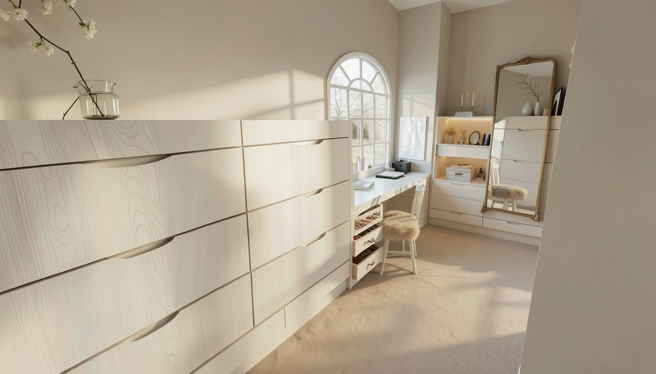 red multi stock brickwork laid stretcher bond open side timber framed porch with pitched gable roof timbers painted in white to match windows white painted upvc casement windows with astragal bars black front doors clay roof tiles in a warm red brown tone laid flat roof lights only no dormers soft natural daylight with realistic shadows follow the drawing exactly ultra realistic textures architectural photography style remove all text from image sunny background simple white floral landscaping under windows small grass area with gravel paths up to front doors prominent bonnet hip tiles along roof hips creating a rounded raised ridge detail where roof slopes meet