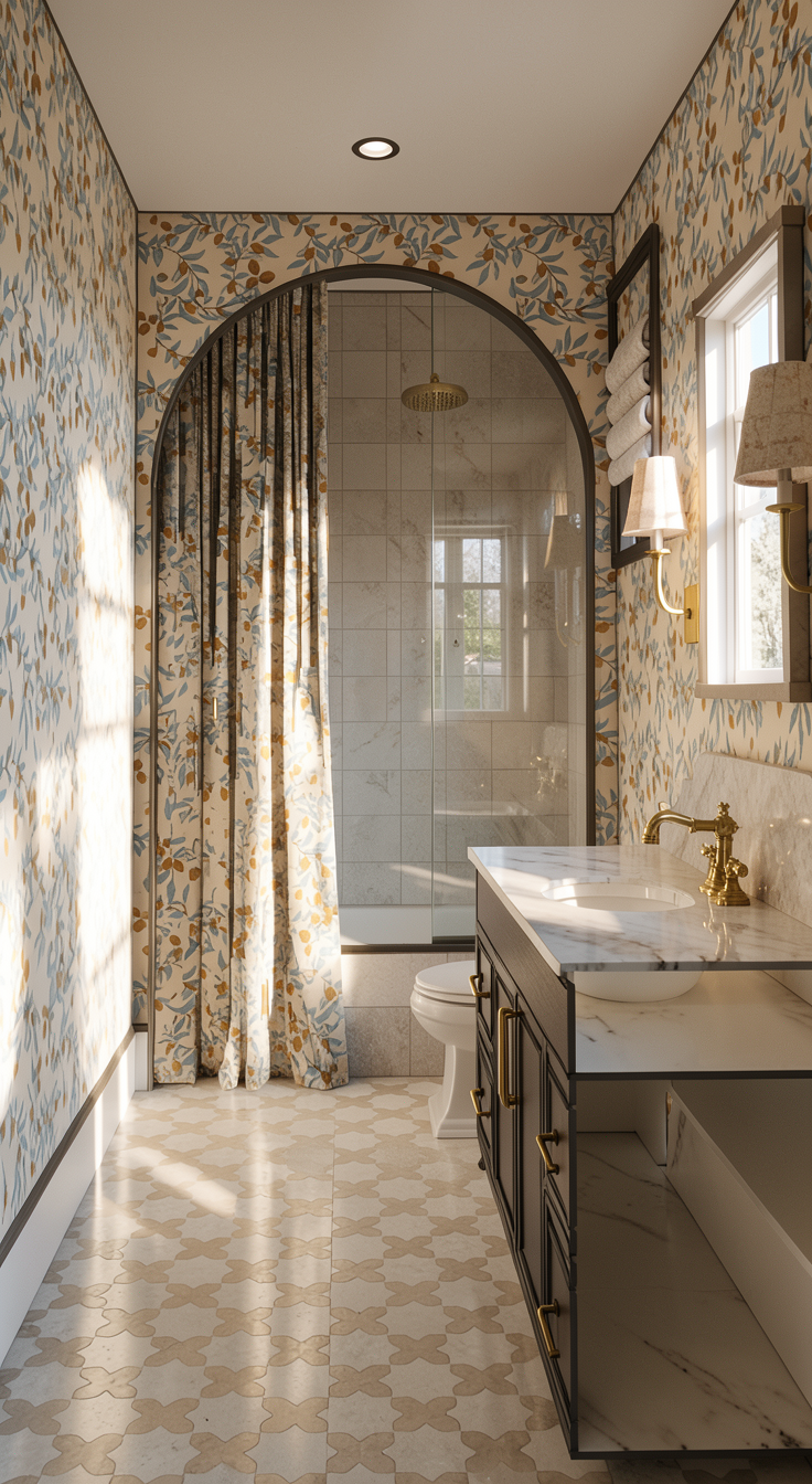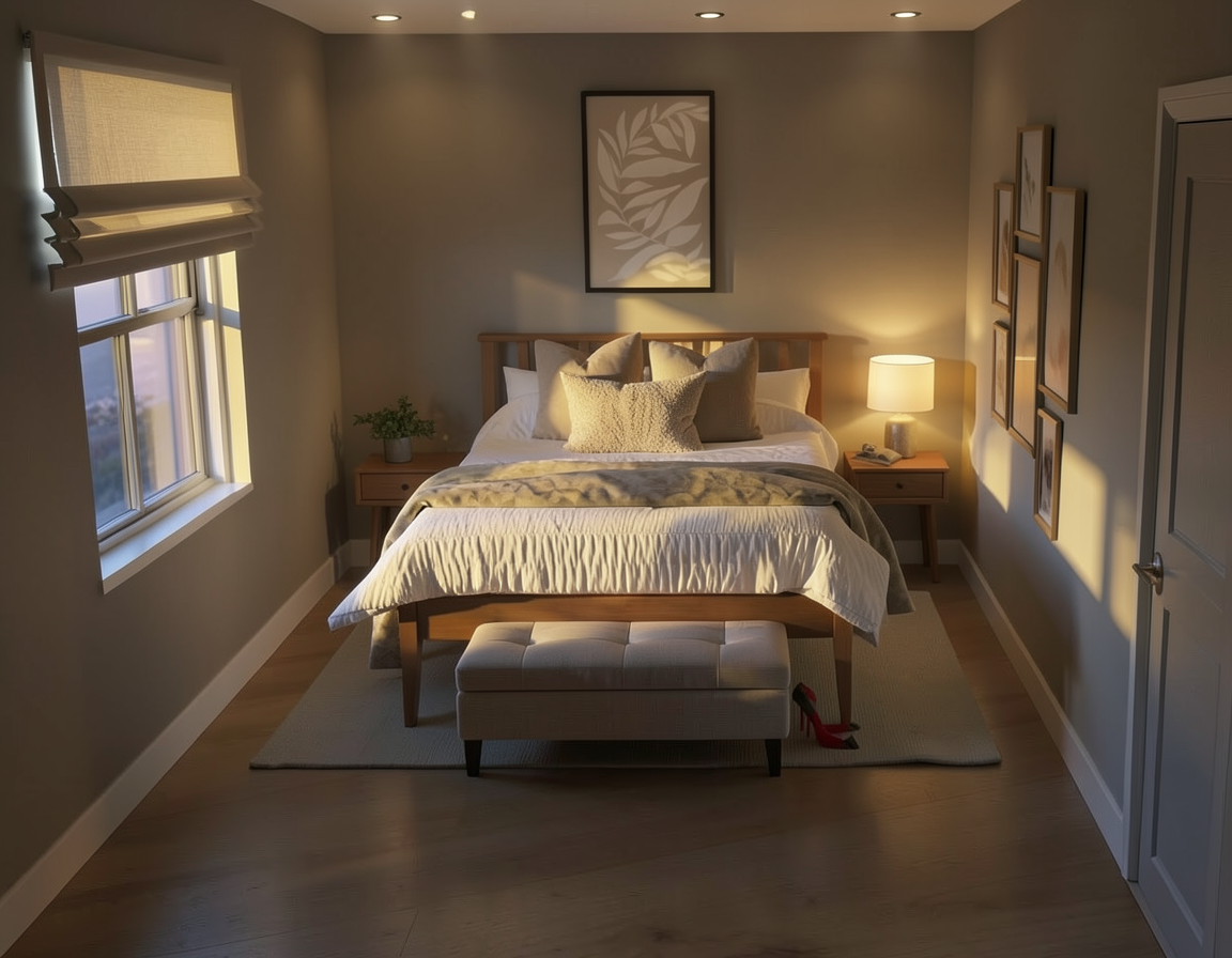 white trim and off white clapboard siding white cottage mullions grey tone stacked stone veneer in place of the brick grey tone patio pavers shrubs bushes and flowers near the house trees in the background and one in the foreground for shaddow and lighting to be real white wood furniture on the covered porch and people placed in the image to show realism and proper scale keep the image as close to the original as possible add a walkway from the middle of the stair straight out to the street the stone stairs shall be large slabs of bluestone widen the driveway and and keep the retaining wall keep the image realistic