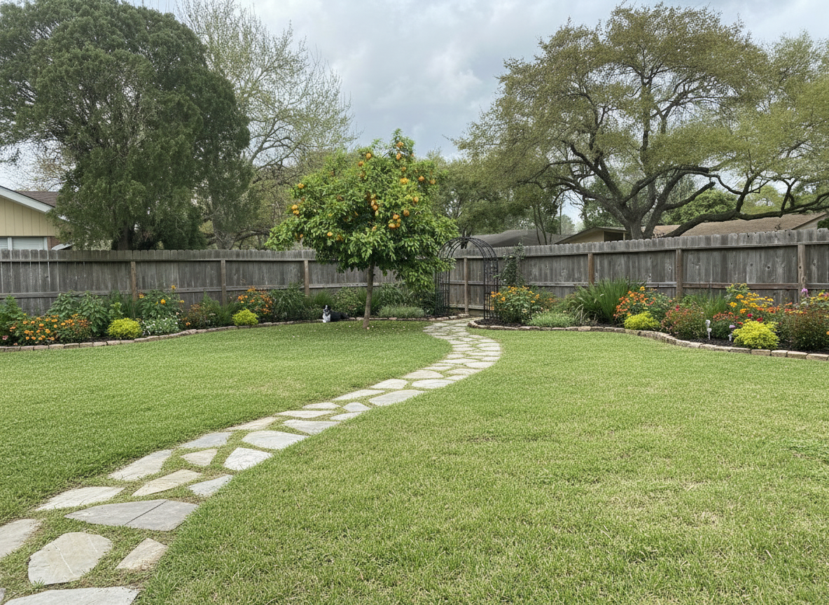 add modern landscaping with native texas plants surrounding a mid century modern pool replace the fence with a new modern one