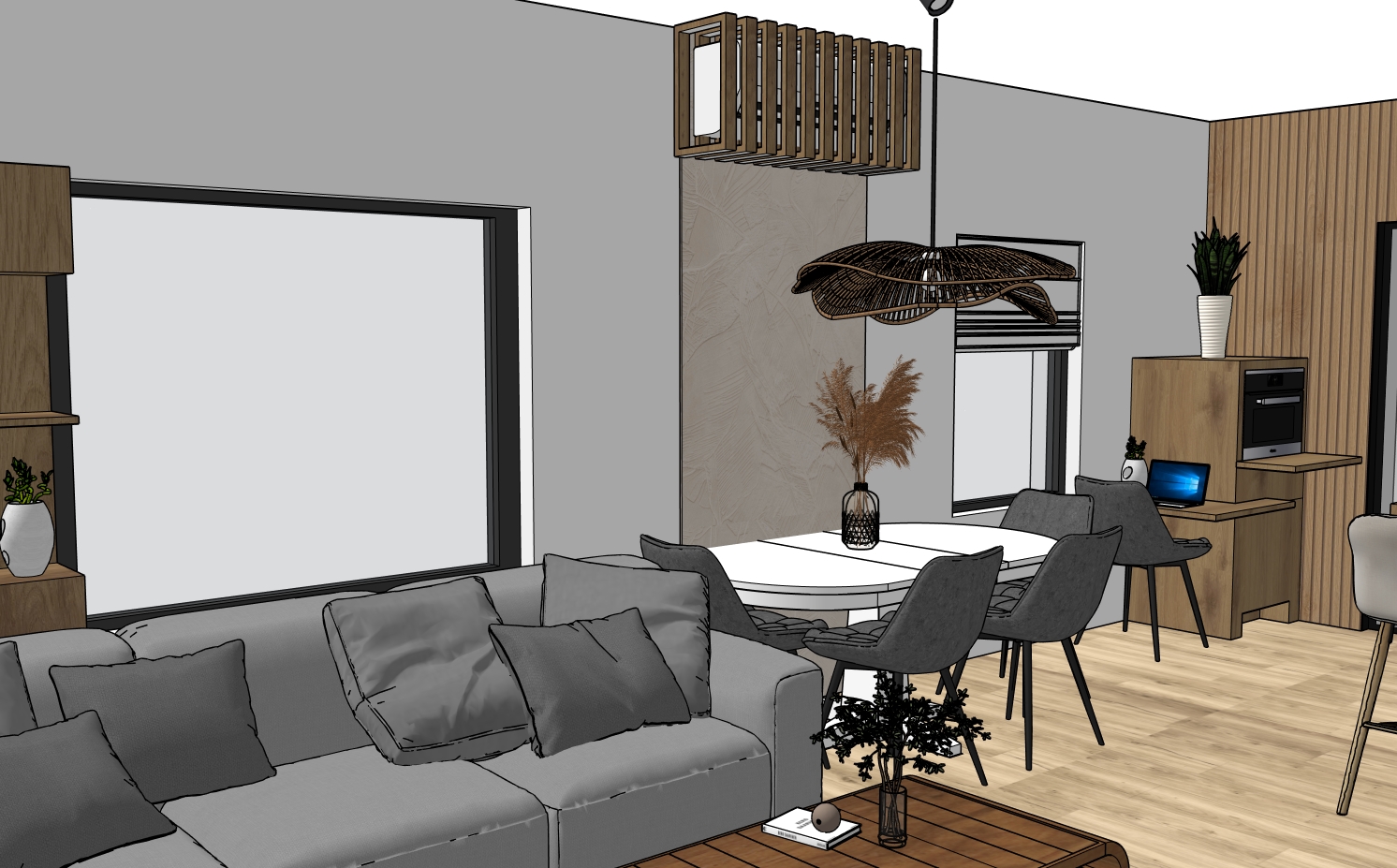 the same living room respect the geometry give it a nordic atmosphere