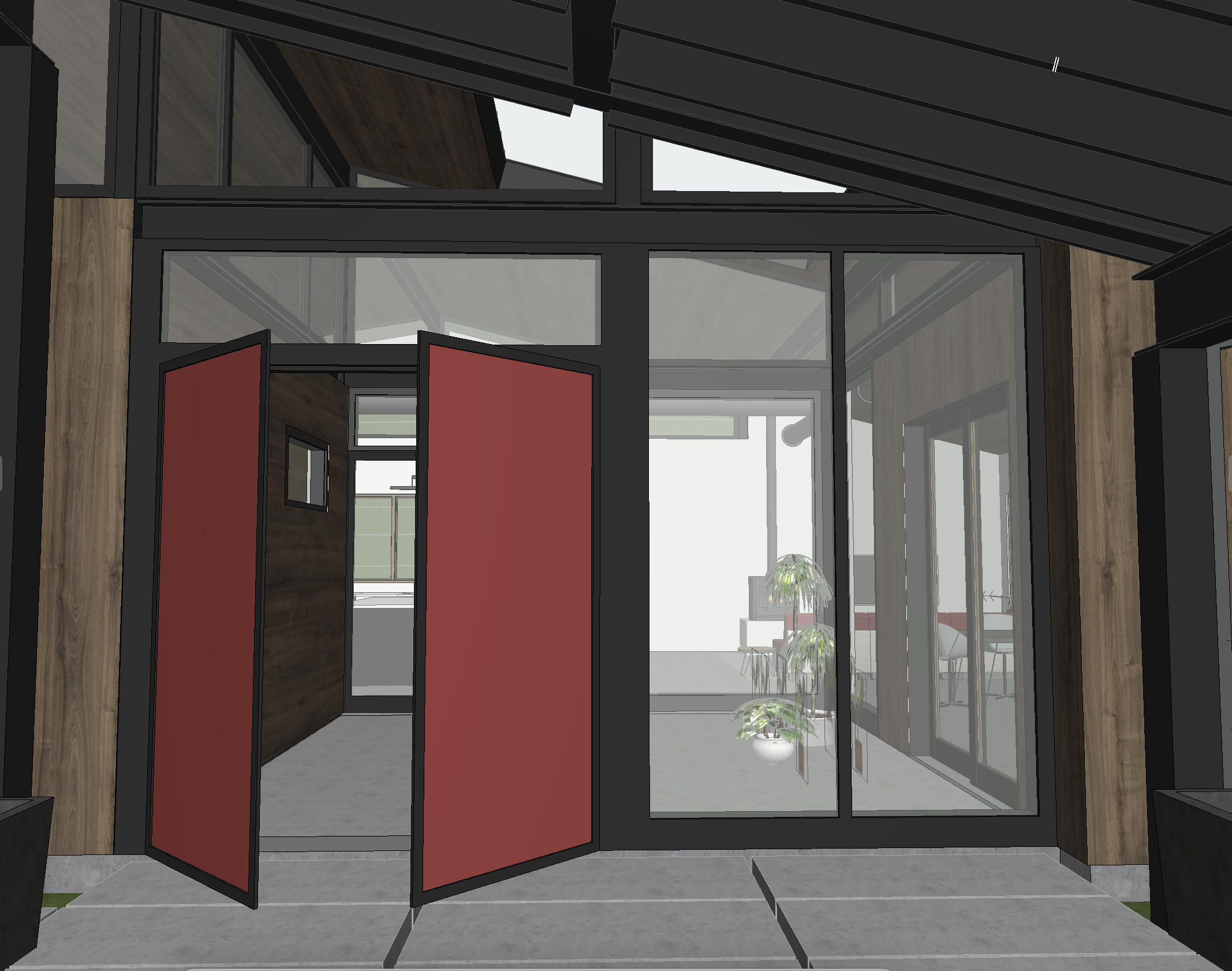 mid century design atrium with plants