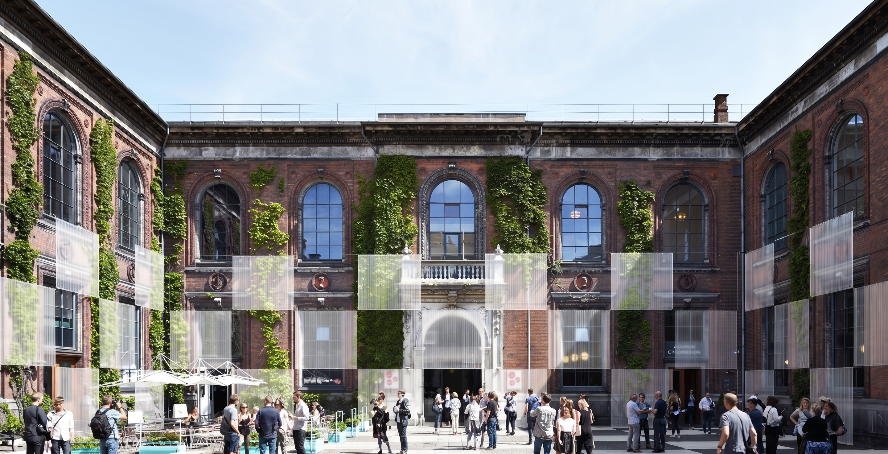 night view where each polycarbonate sheet is illuminated and reflecting light