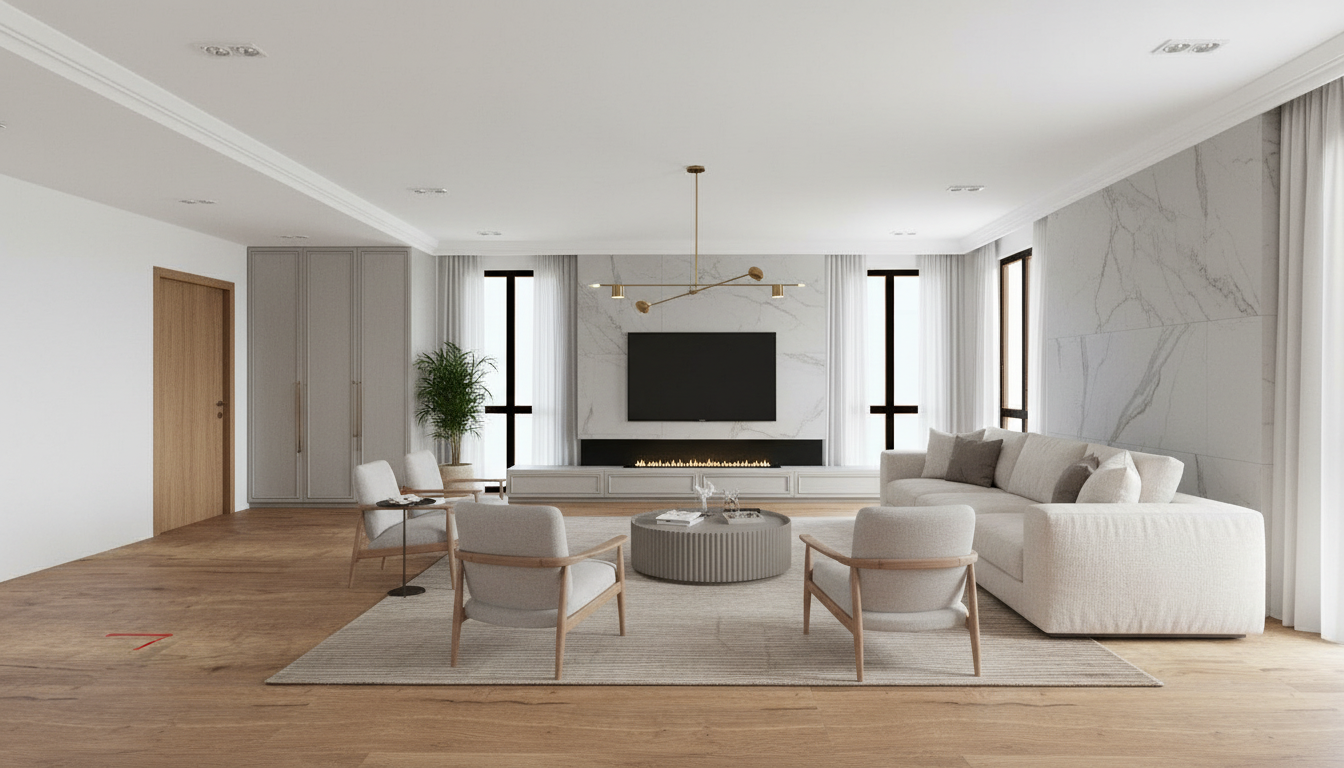 make it realsitic the wall behind the bed has two led stripes that light the wallpaper not the bed do not change any material the image must be durng the day the curtains are white and almost invisible