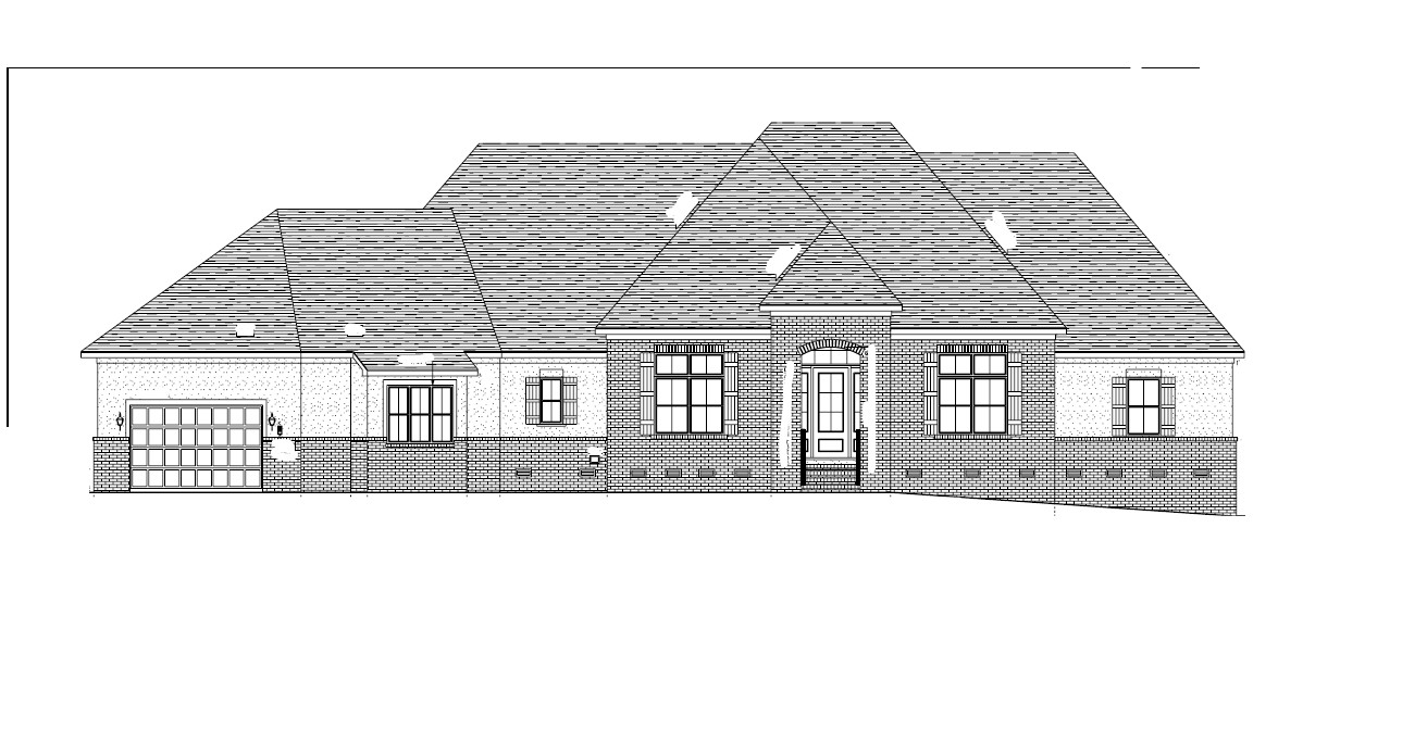 make as photorealistic as possible keep textures the same as shown add professional landscaping in a lightly wooded suburban scene in columbia sc match materials as shown with the following brick evelyn grey siding e8e4d4 stucco ddd8d6 trim e8e4d4 soffit and fascia white windows black roof georgetown grey certainteed dimensional shingles railing white door and side lites 753c4b shutters 54363e