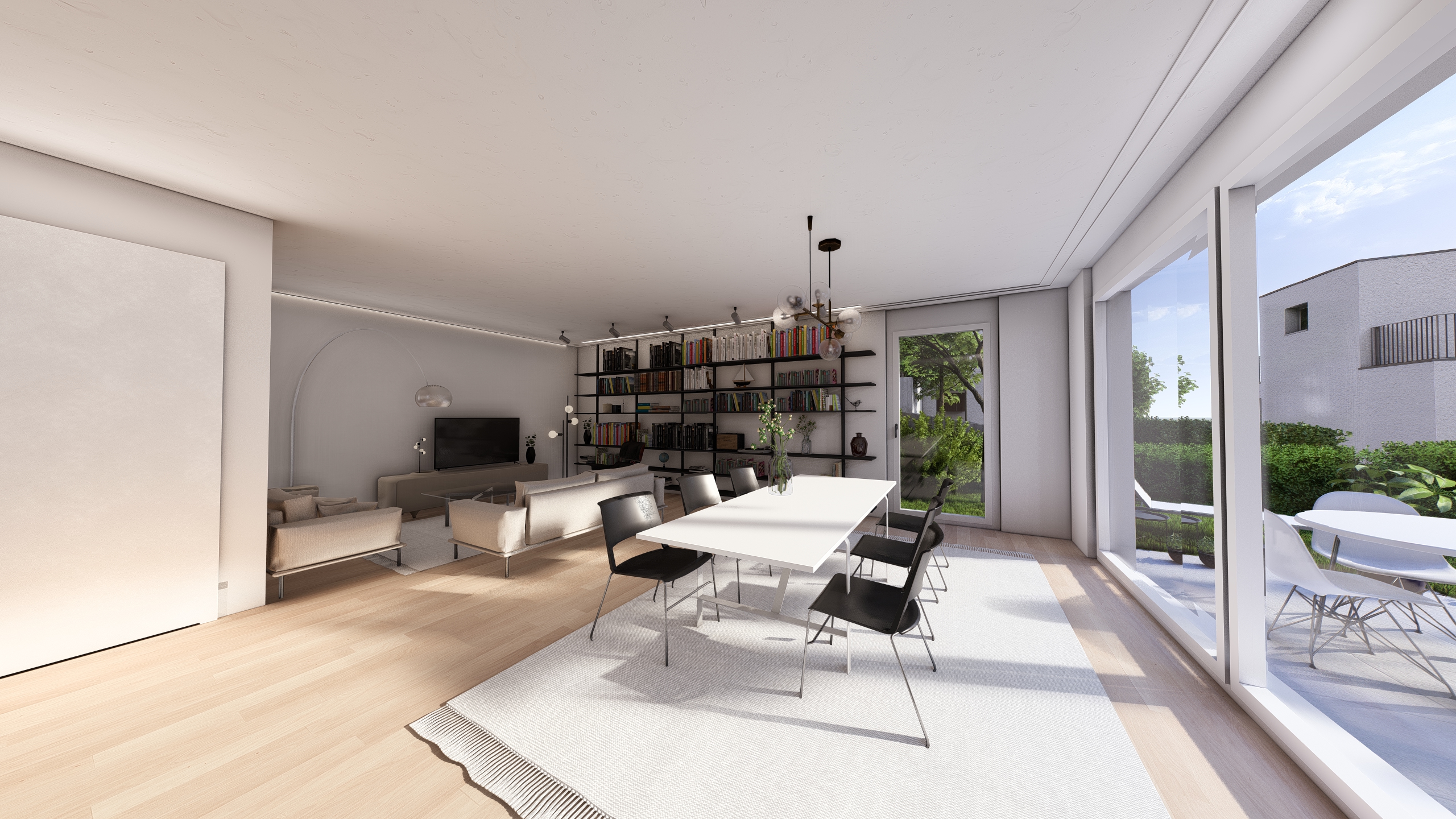 a modern livingrrom the room is bright and welcoming in front of the window there are curtains