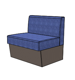 make a realistic rendering of this sofa do it on a white background artificial marine blue leather oak finish plinth