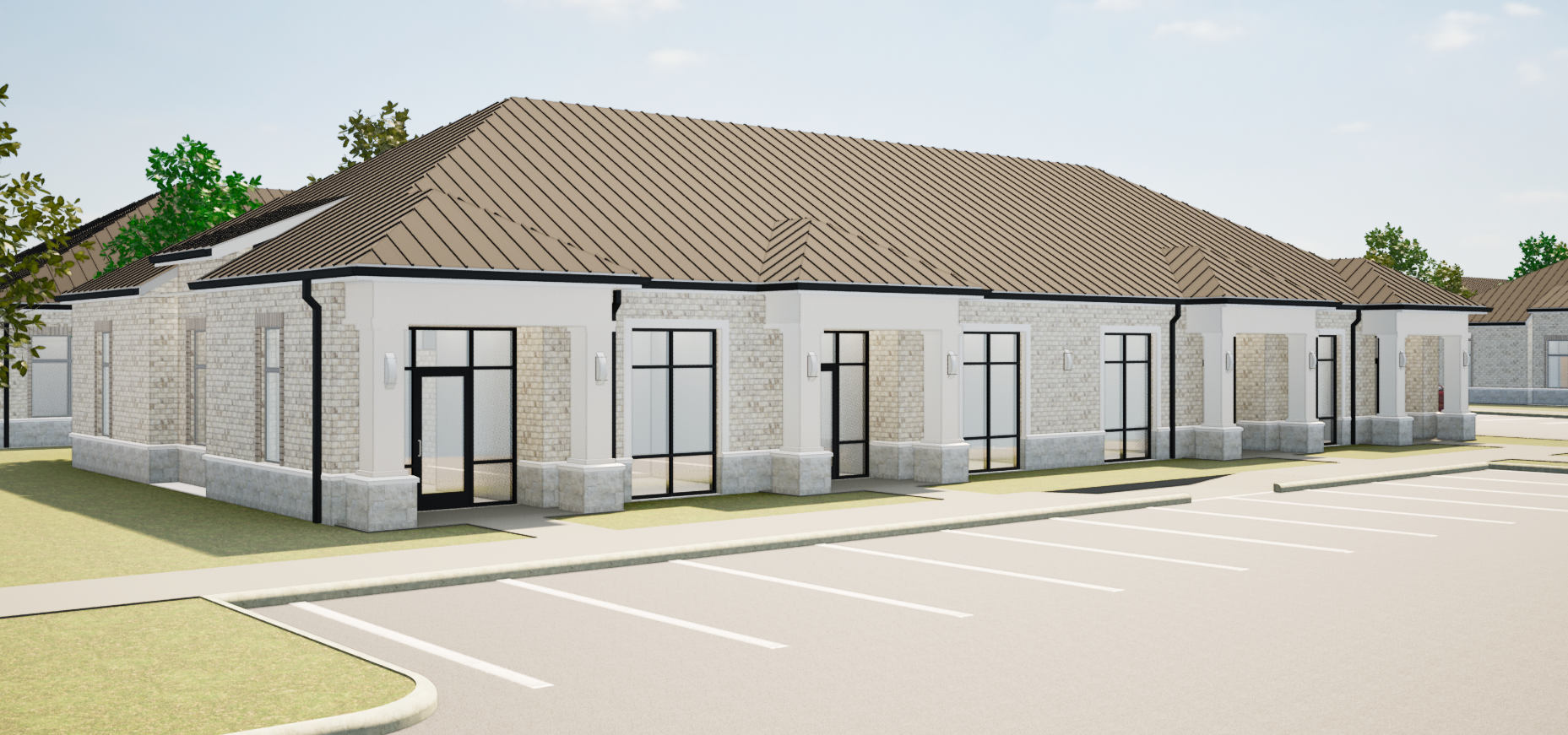 enhance the current materials and create a photorealistic atmospheric depth render the scene in hyper realistic architectural quality enriching the environment and highly detailed textures bright sunny day with balanced natural lighting clear visibility and soft shadows ideal for high end for architectural rendering maintain colors and the roof is a metal seam roof eliminate glare and harsh sun reflections maintain realistic lighting balance preserve architectural geometry high photorealism