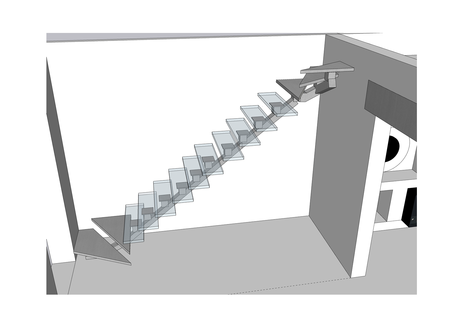 les 2 premiere marche en metal gris et les 3 derniere marche en matel gris et les autre en verre